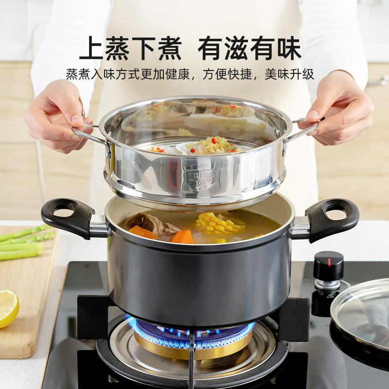 0WYV ceramic soup pot household gas stove induction cooker binaural thickened non-stick steamer with steamer dual-use