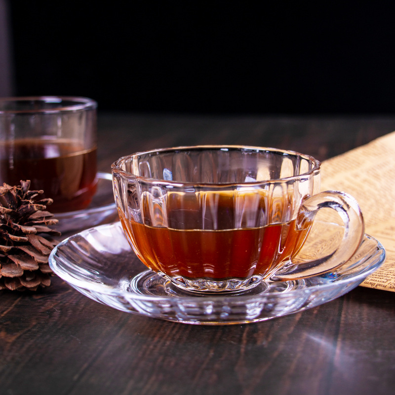 0WYV European style afternoon tea simple small luxury transparent glass Cup Saucer Tea Cup coffee cup with handle tea set
