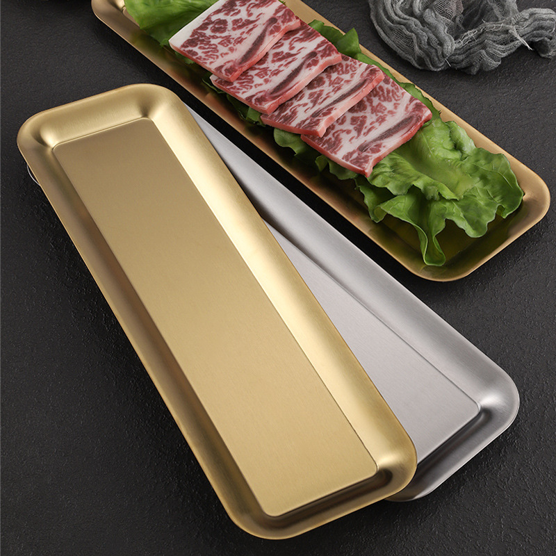 | nameOriginal | 0WYV Korean 304 stainless steel rectangular plate long plate commercial thickened Golden sushi plate barbecue plate flat |