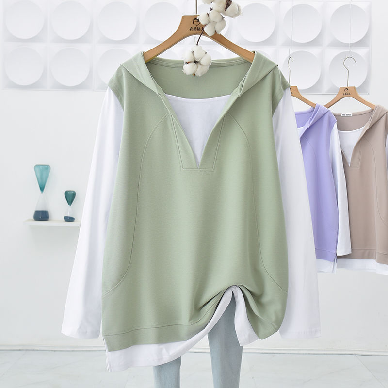 | nameOriginal | 1.00 kg-150.00 kg Plus Size Design Sense Hooded Sweater Women's Spring and Autumn Thin Loose All-match Fake Two-piece Top Trendy |