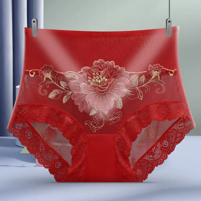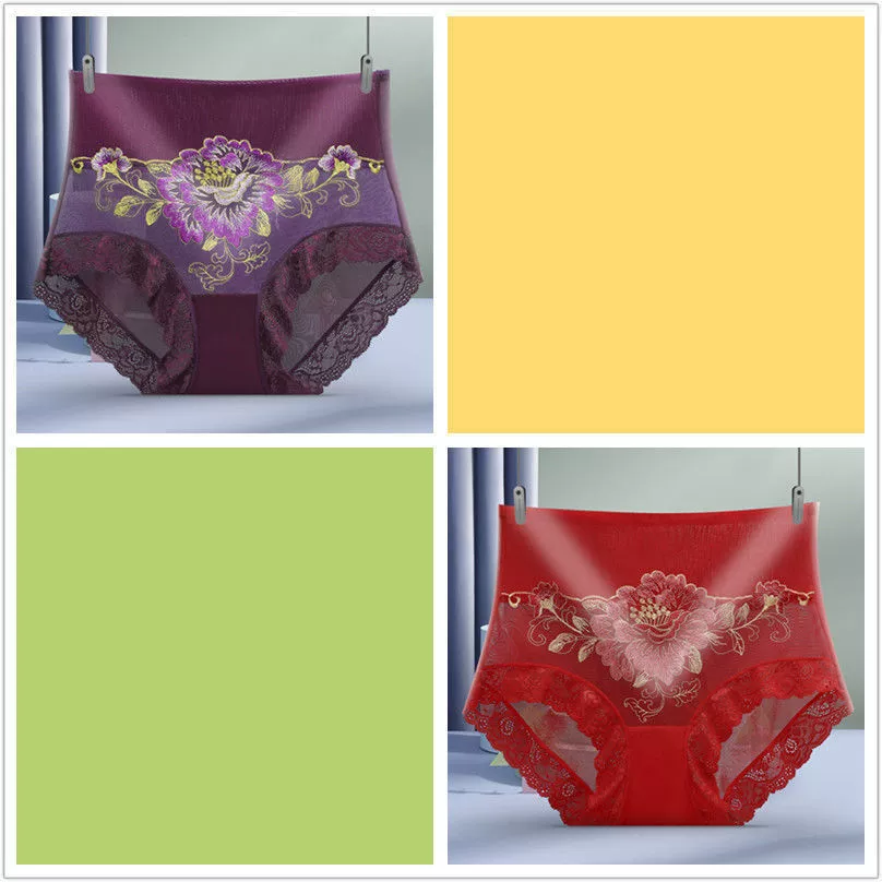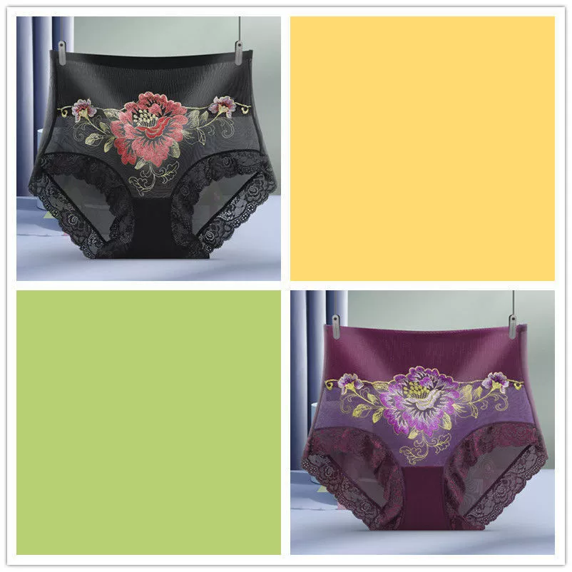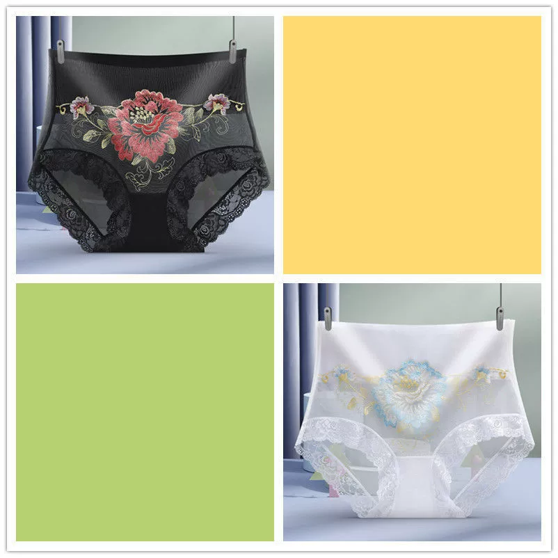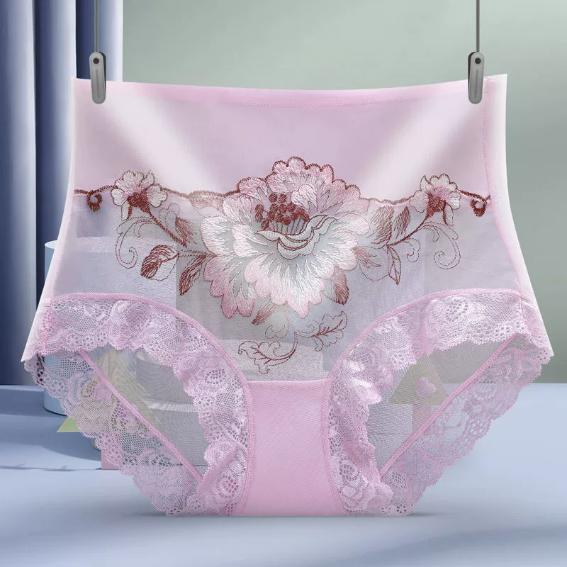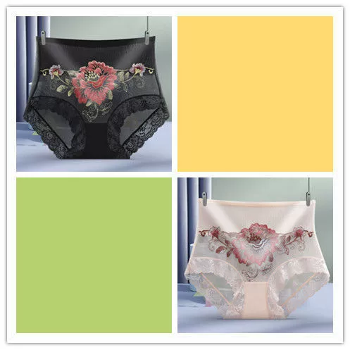 1/2 pair of high waist micro tummy control underwear for women embroidered sexy lace seamless briefs