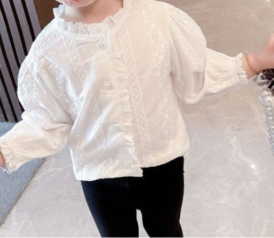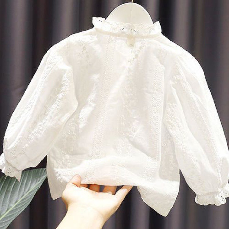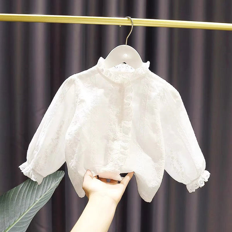 1-5 years old baby girl super fairy lace doll shirt girls spring and summer children lace princess pure white shirt tide