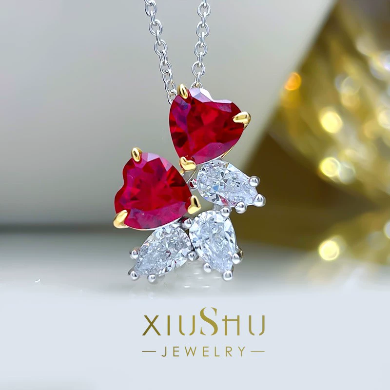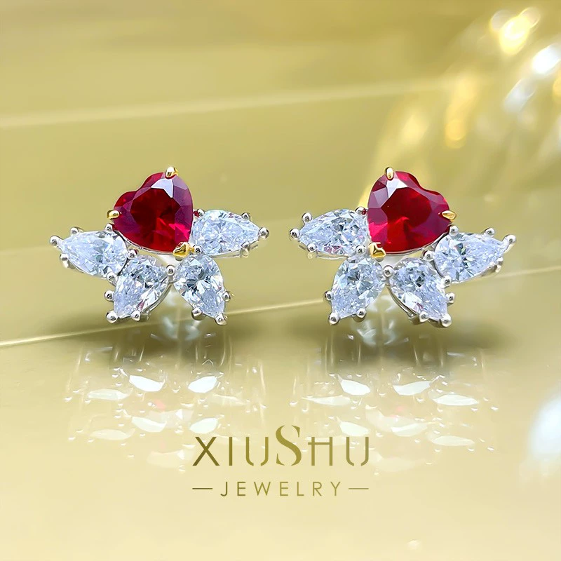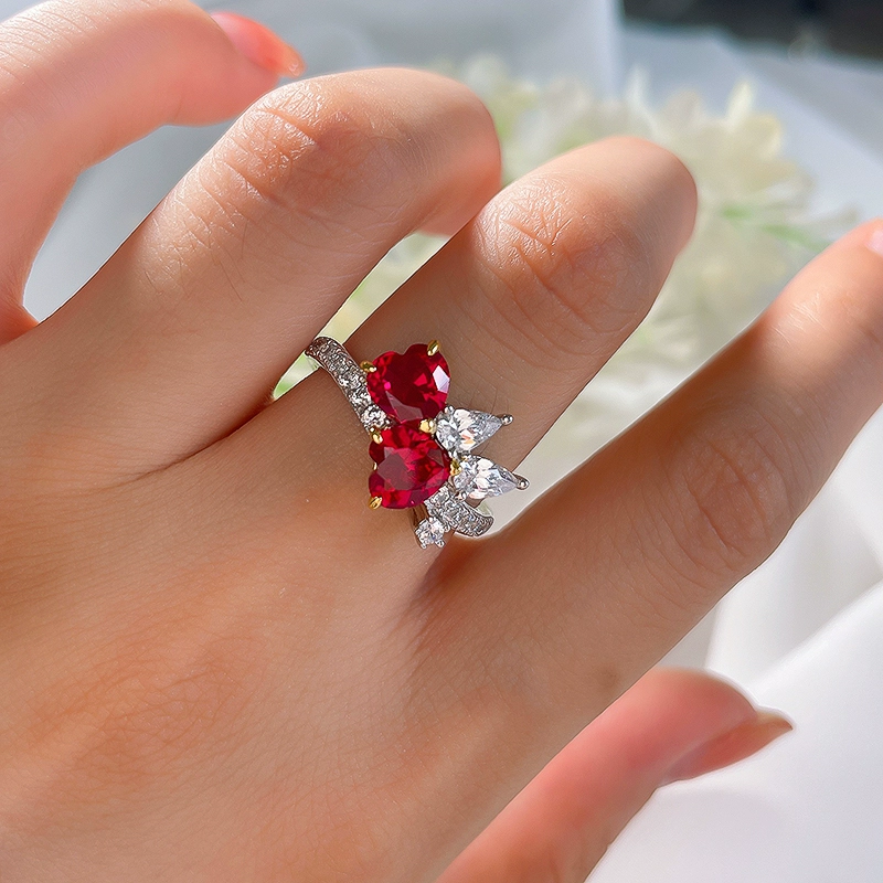 | nameOriginal | 1 carat artificial pigeon blood ruby double love ring set advanced new sweet fashion trend 925 silver J95 |