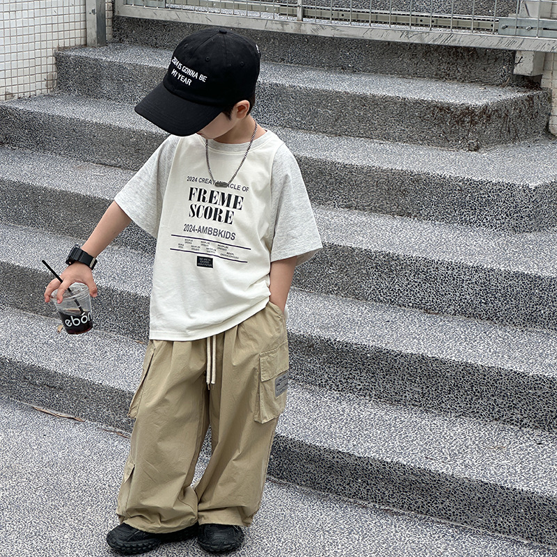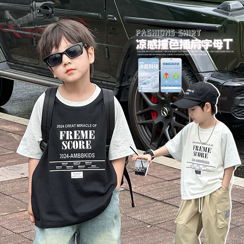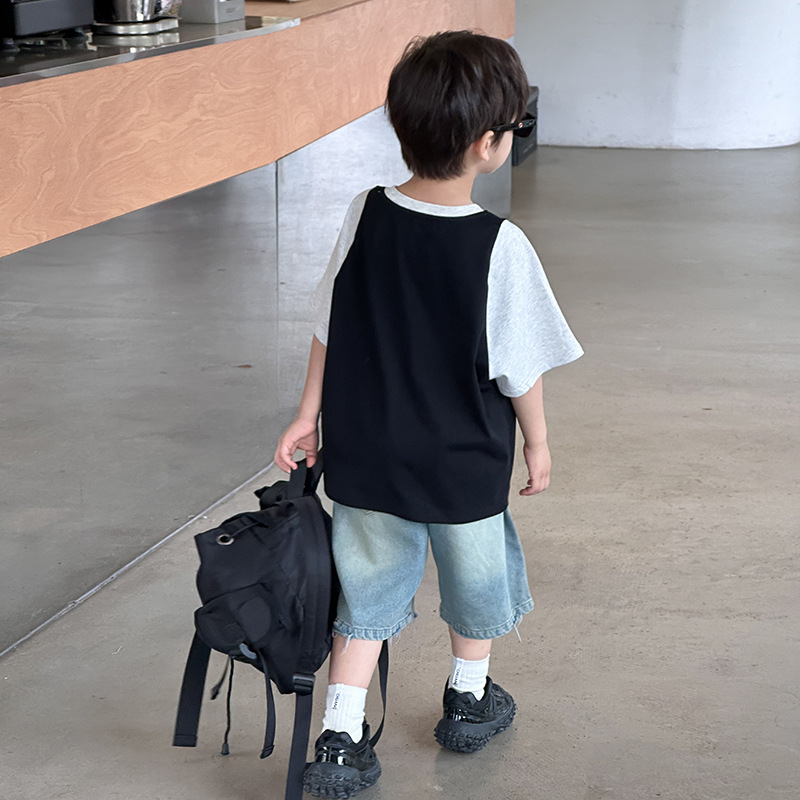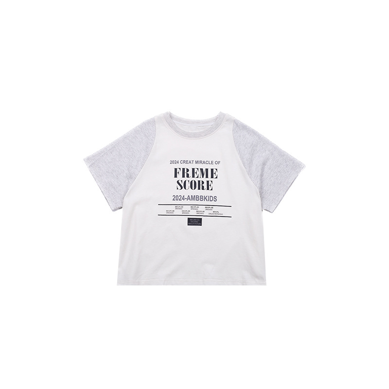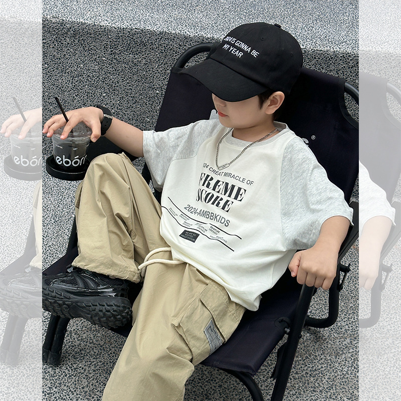 | nameOriginal | [1 hour before the sale at 10: 00 on may 7] children's handsome loose contrast letter stitching t-shirt |