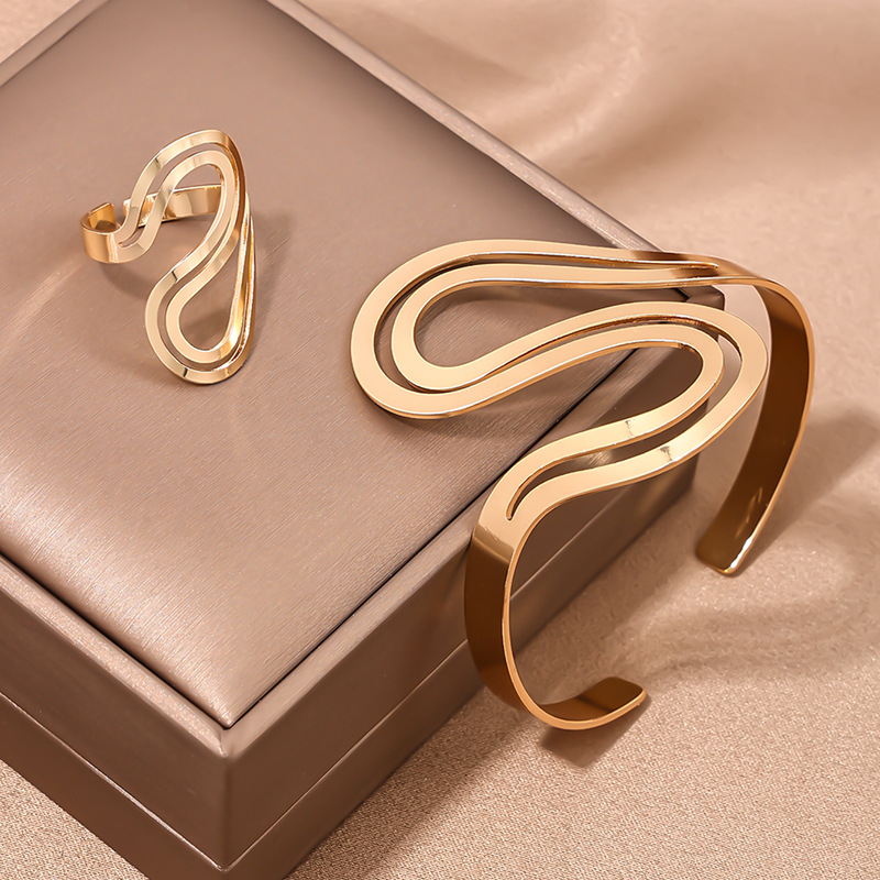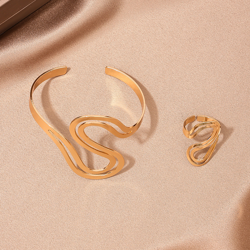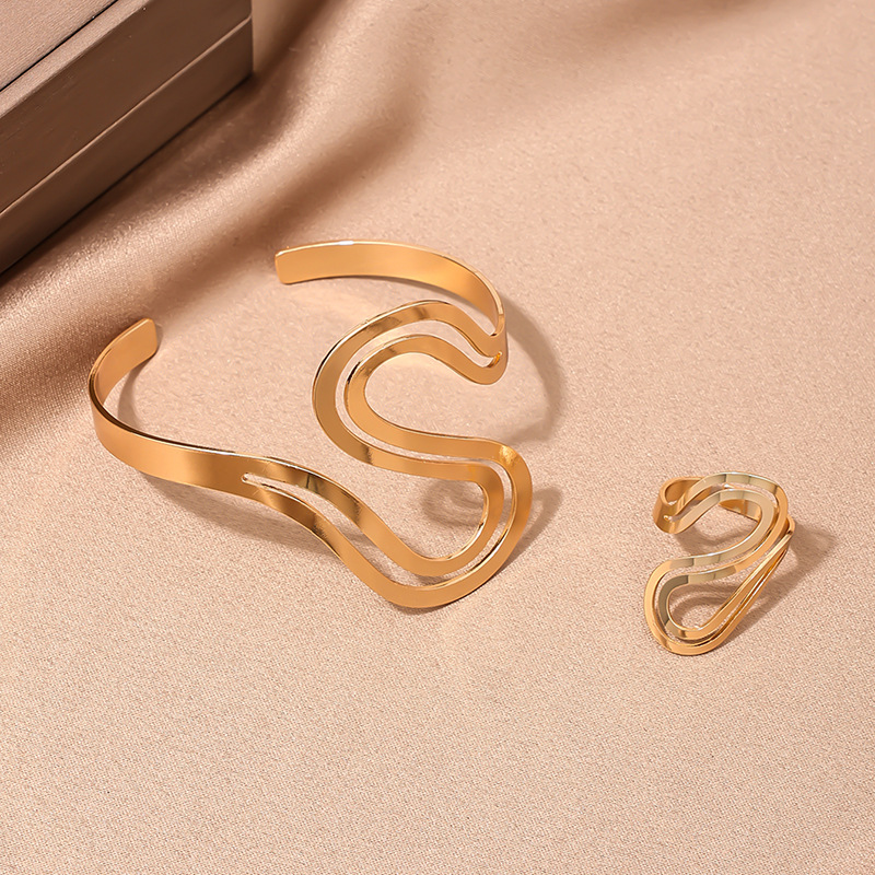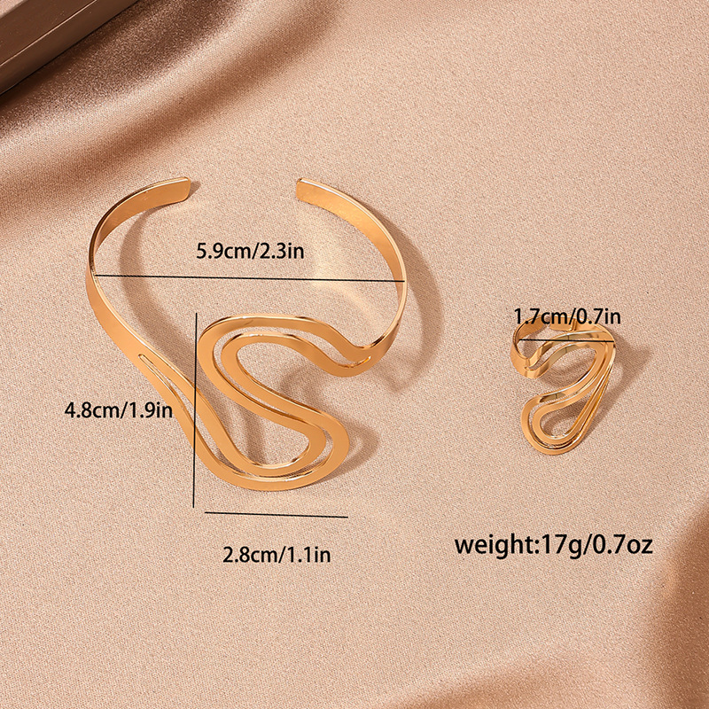 | nameOriginal | 1 Set European and American Fashion Personality Metal S Shape Design Opening Women Bracelet Ring Set Mother's Day Gift Jewelry |