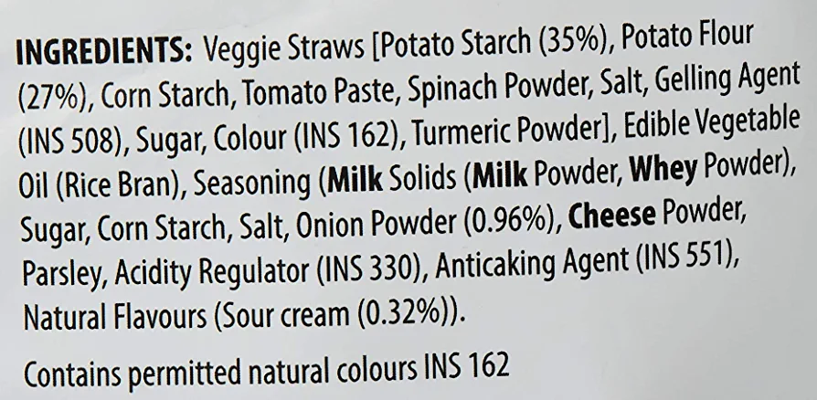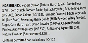 1. Sour Cream & Onion Garden Veggie Straws, 120 gm (1 Pack) 2. Garden Veggie Straws with Sour Cream & Onion Flavor, 120 gm (1 Pack) 3. 120 gm (1 Pack) of Garden Veggie Straws in Sour Cream & Onion Flavor
