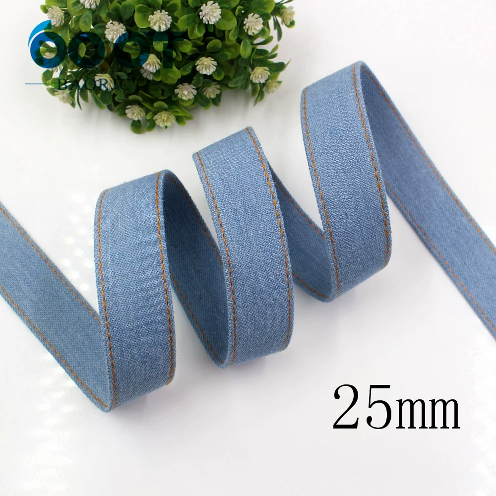 1 yard 10/25/38mm solid color seamed denim ribbon webbing ribbed ribbon polyester bow