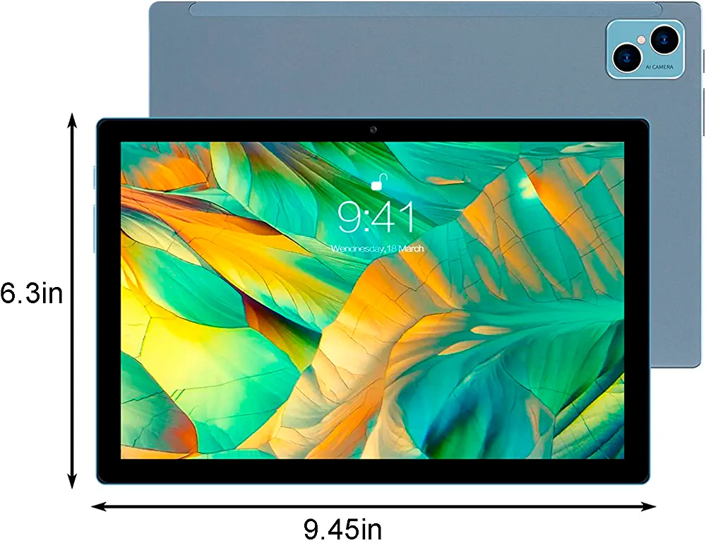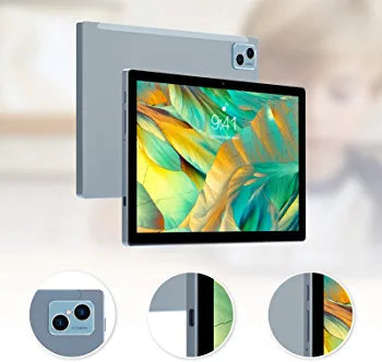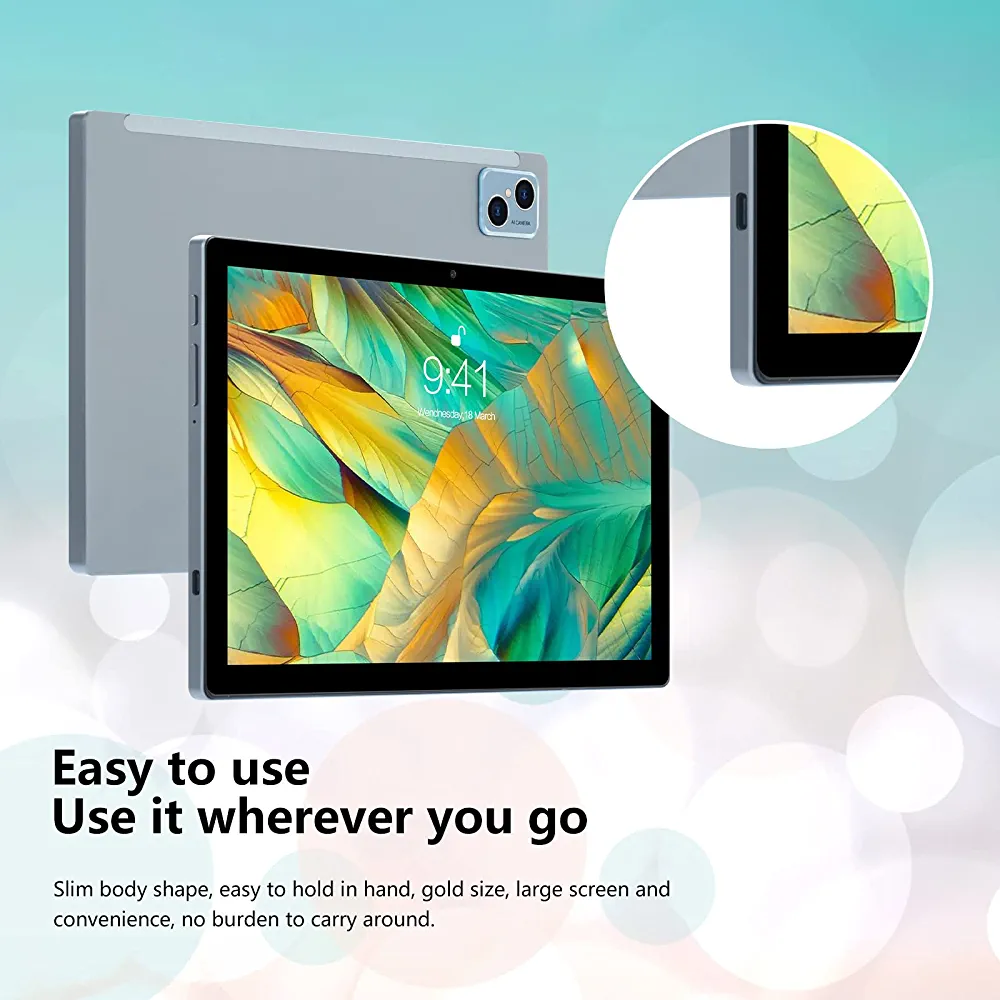 10.1″ Android 10 Tablet with 10 Processor, 4GB RAM, 32GB ROM, 13MP & 5MP Camera, and 1080P HD Display. Supports up to 256GB.