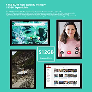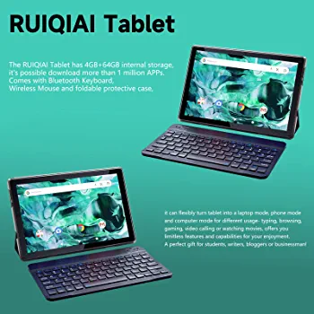 The RUIQIAI tablet boasts an ultra-wide 10.1 inch HD+ screen that delivers vivid visuals and clear audio in 1280 x 800HD IPS Touch Screen. It provides an exceptional viewing experience.