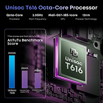 Stay connected with Wifi and 5G capabilities, allowing you to browse the internet and stream content at lightning-fast speeds. Powered by the Unisoc T616 Octa-Core processor, this tablet delivers exceptional performance and speed. Capture stunning photos and videos with the 13+5MP camera, and stay connected with Bluetooth 5.0 technology.