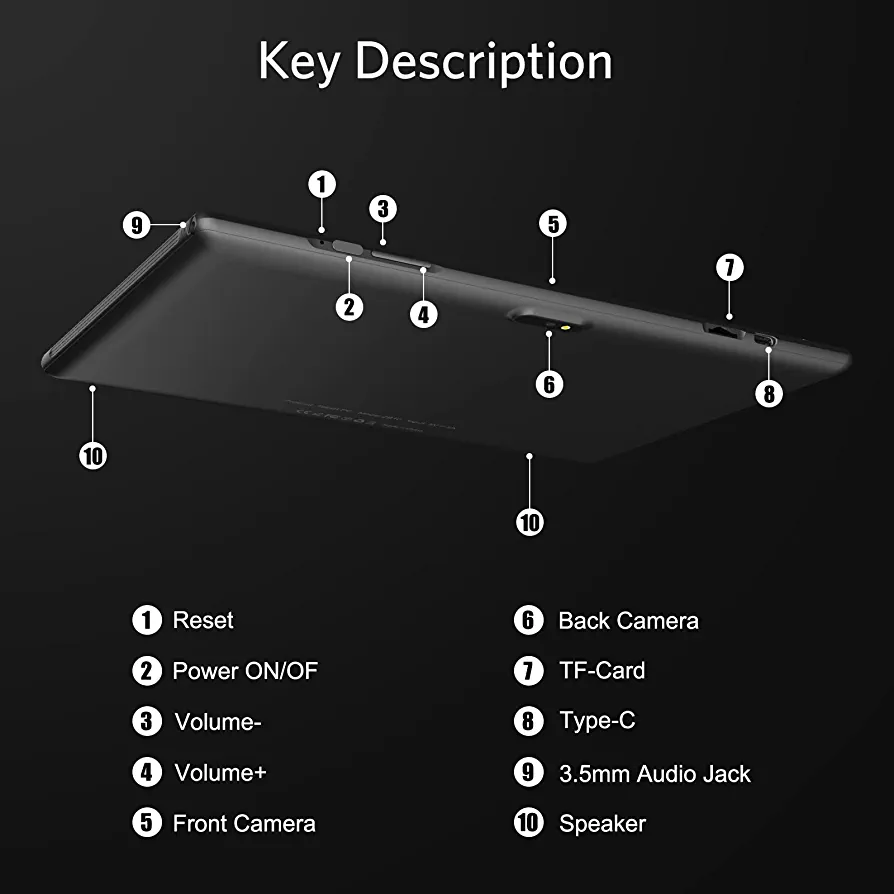 | nameOriginal | 10 Inch Tablet, Google Android 11 Tablet, Quad-Core Processor Tableta Computer with 32GB ROM 2GB RAM 8MP Camera WiFi BT 10.1 in HD Display, 6000mAh Long Battery Life Tablet. |