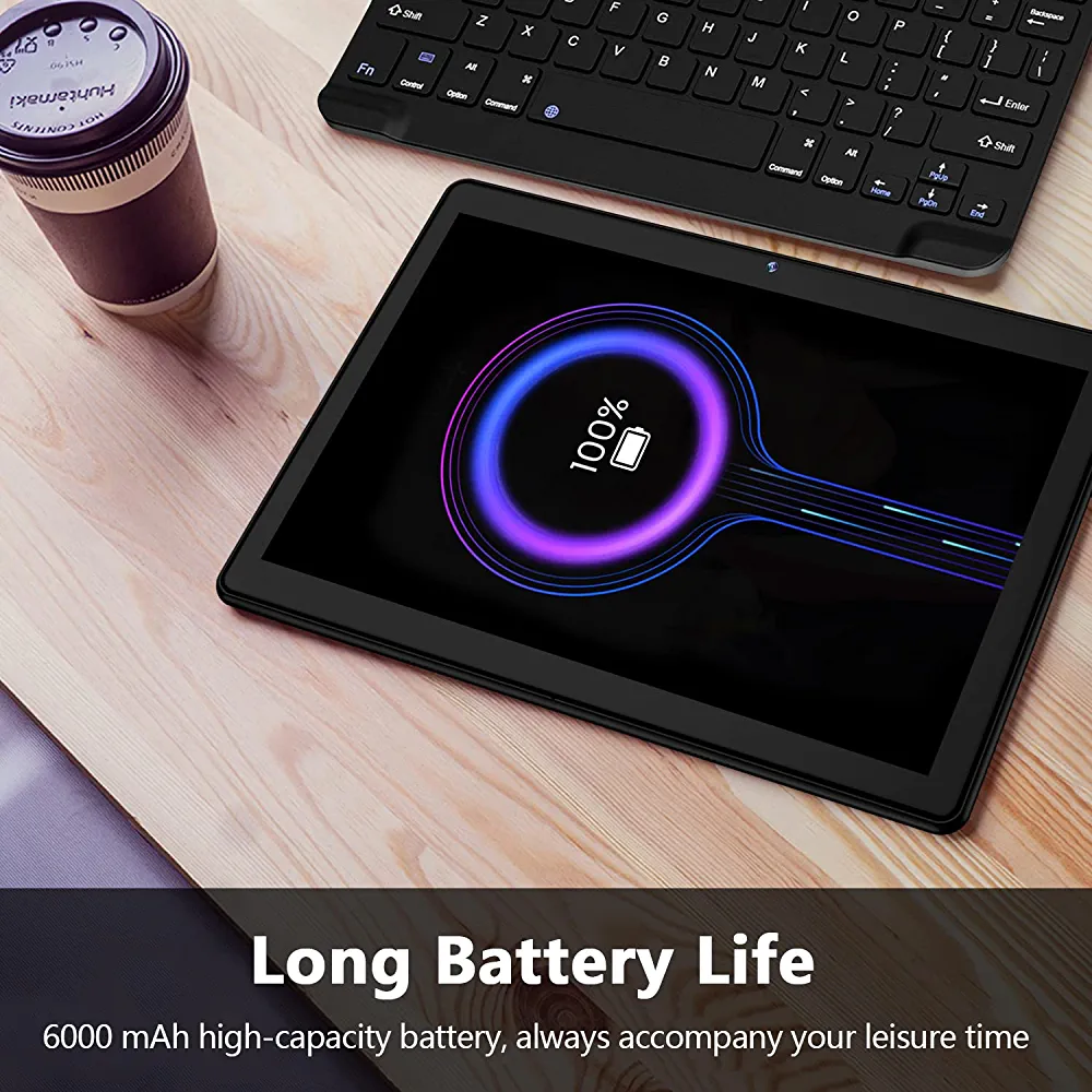 The QUKENK Tablet is equipped with a 6000mAh large capacity battery and low power consumption CPU, ensuring long-lasting battery life of 8-12 hours of mixed-use. It is perfect for traveling and home use.