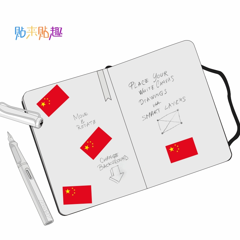 10 Chinese flag tablets, notebooks, small stickers, personalized suitcase water cup stickers, waterproof