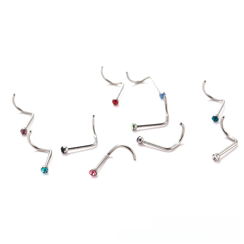 | nameOriginal | 10 colors a pack of European and American fashion diamond nose ring stainless steel nose nail cross-border hot sale body piercing jewelry |