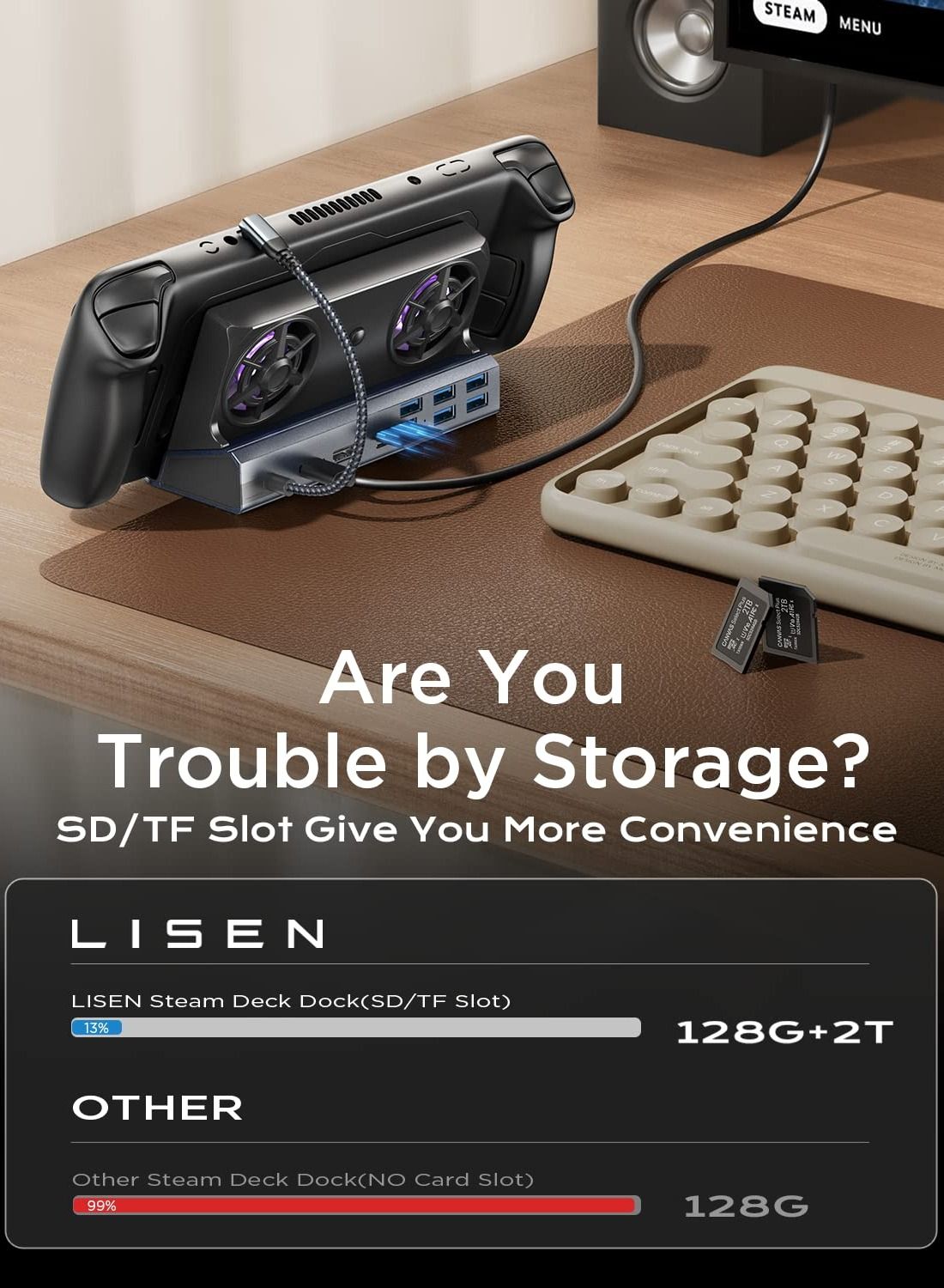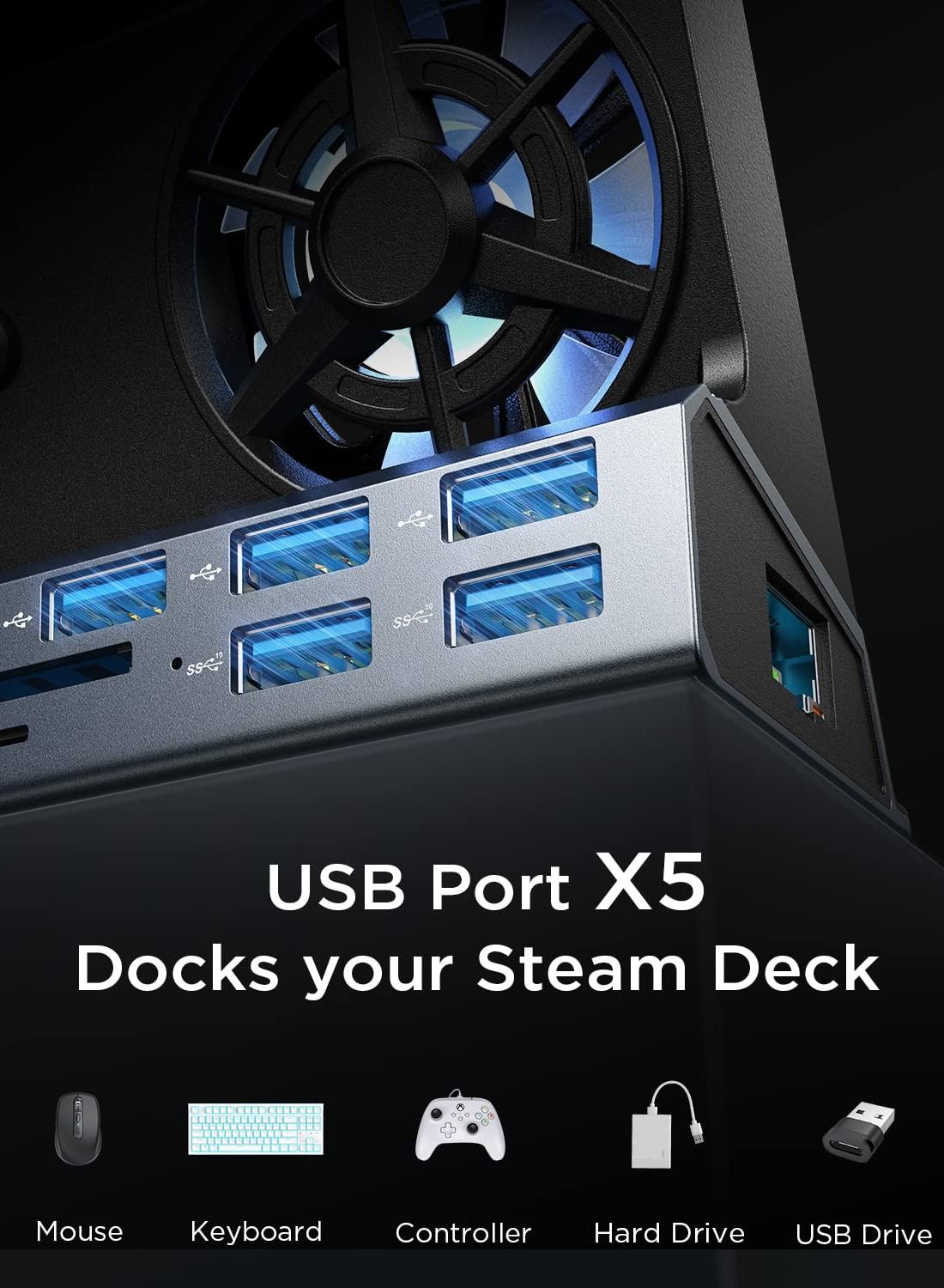 The hyper-speed 1000 Mbps Ethernet port allows you to access the internet more instantly and steadily, while the fans cooling system ensures that your Steam Deck stays cool during intense gaming sessions. The docking station also features additional ports for connecting to multiplayer game controllers, gamepads, mouse keyboards, and more.