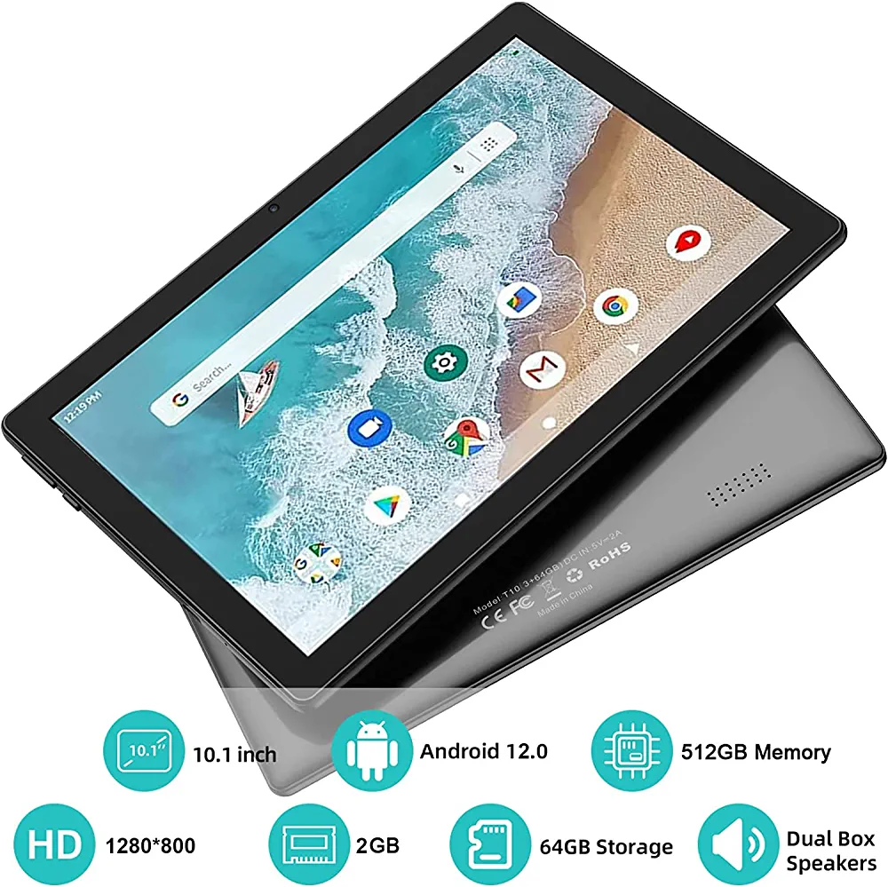 With 2GB of RAM and 64GB of ROM, this tablet can handle multiple applications and store your favorite media files. You can also expand the storage up to 512GB using a micro SD card. The tablet runs on the latest Android 12.0 operating system, providing a smooth and user-friendly interface.