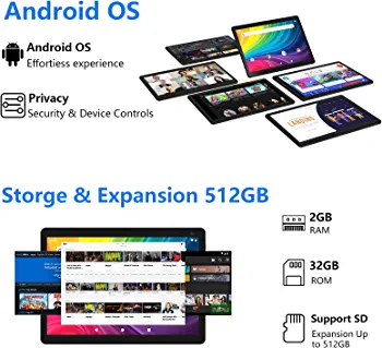 Introducing the Android Tablet, a sleek and powerful device that is perfect for both personal and professional use. With a large 10 inch IPS screen, you can enjoy your favorite movies, TV shows, and games in stunning high definition. The tablet is equipped with 2GB of RAM and 32GB of storage, which can be expanded up to 512GB, providing ample space for all your files, photos, and videos.