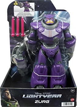 Join Buzz Lightyear and his crewmates on an epic adventure as they battle hostile plants, giant bugs, and the ultimate villain, Zurg, to complete their mission and return home. This action figure is inspired by the thrilling animated movie, Disney and Pixar’s Lightyear, and features Buzz Lightyear’s imposing foe, Zurg. Standing at an impressive 9.9 inches tall, Zurg towers over other characters in the core scale figures line, and boasts 13 movable joints to recreate his signature intimidating poses for intense good versus evil action stories. With movie-authentic design and detail, fans can recreate the excitement of battle, flight, and exploration, and create dramatic Lightyear displays. Other characters and vehicles are also available at this scale, so you can collect them all and bring the adventure to life. Please note that each figure is sold separately, subject to availability, and colors, dimensions, and decorations may vary.