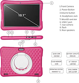 | nameOriginal | JREN Kids Tablet, 10" Tablet for Kids,IPS HD Display 1280 X 800, RAM 2GB and 32GB Storage, Google Family Link Kids Space Pre-Installed, YouTube,Ages 6-12,Color Pink |