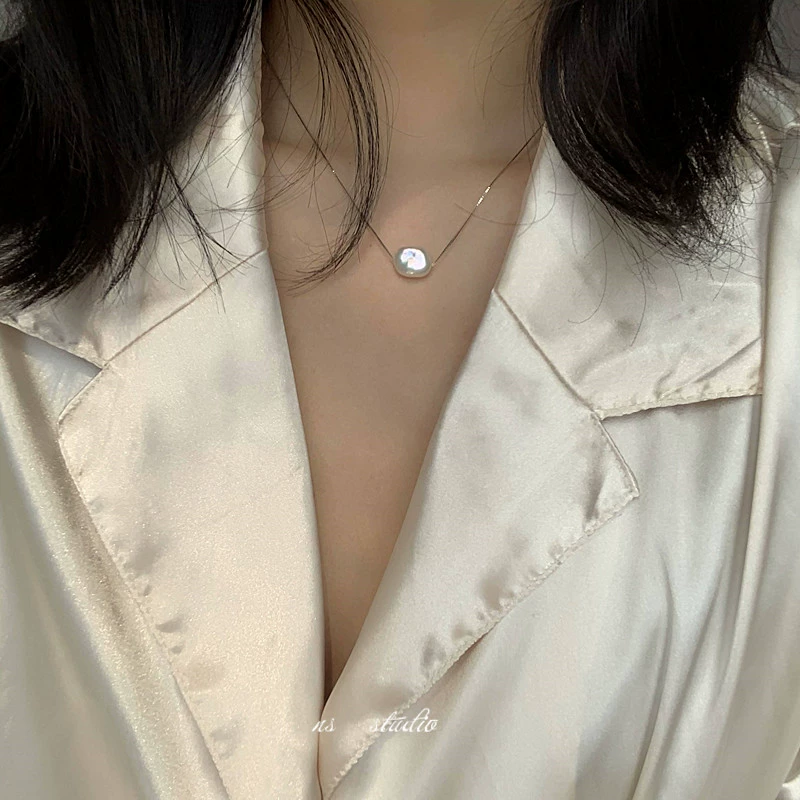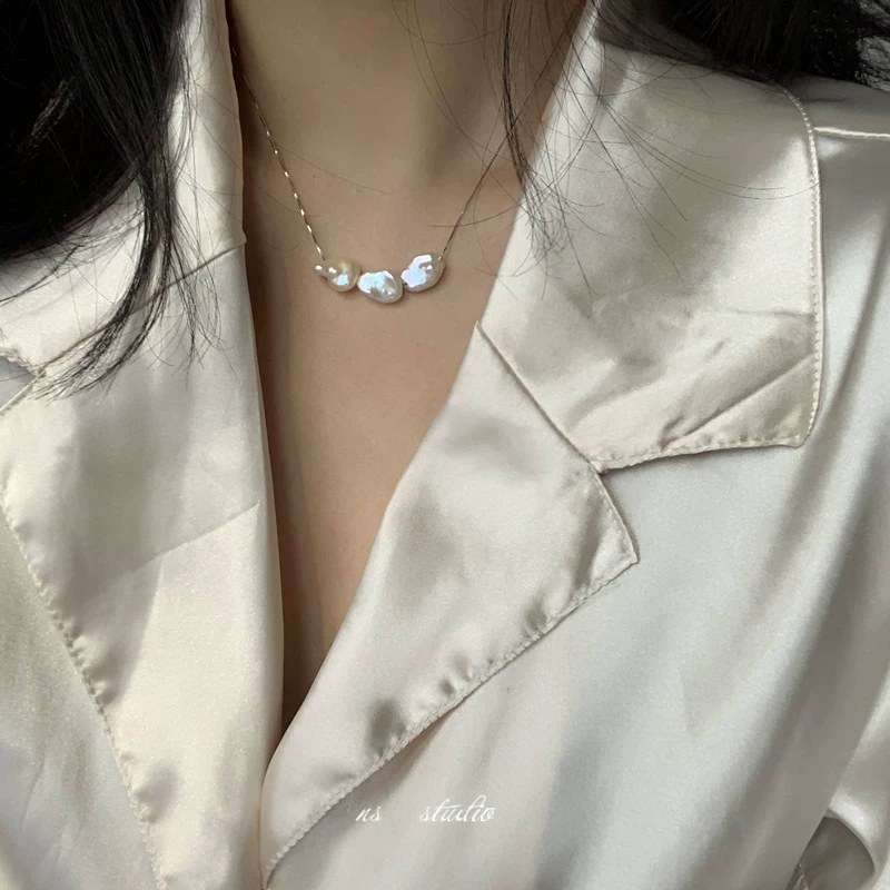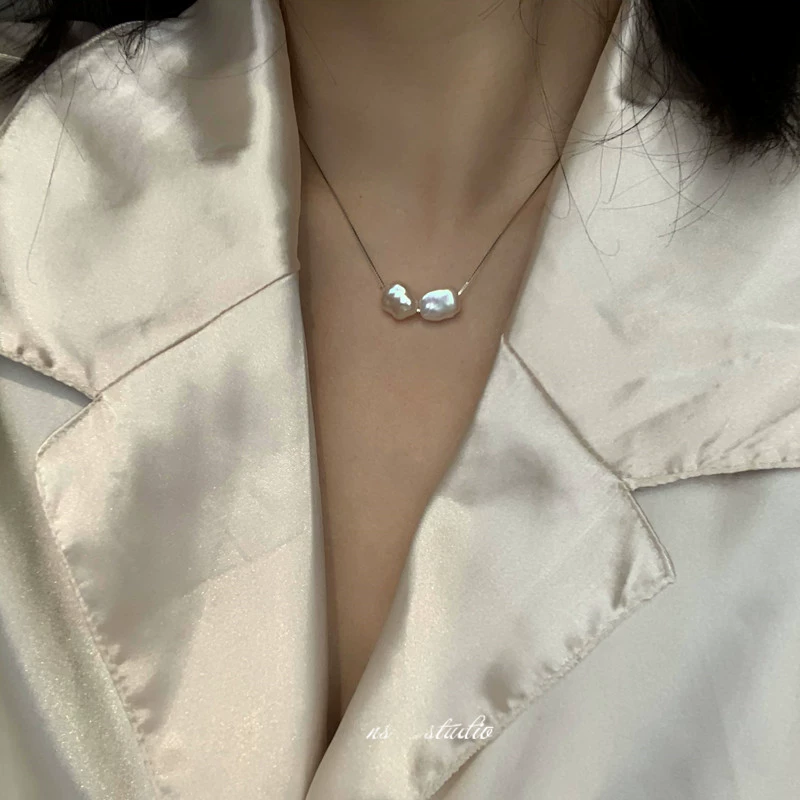 | nameOriginal | 10% off new products) 925 sterling silver ultra-fine clavicle chain strong light natural baroque pearl necklace French niche women |