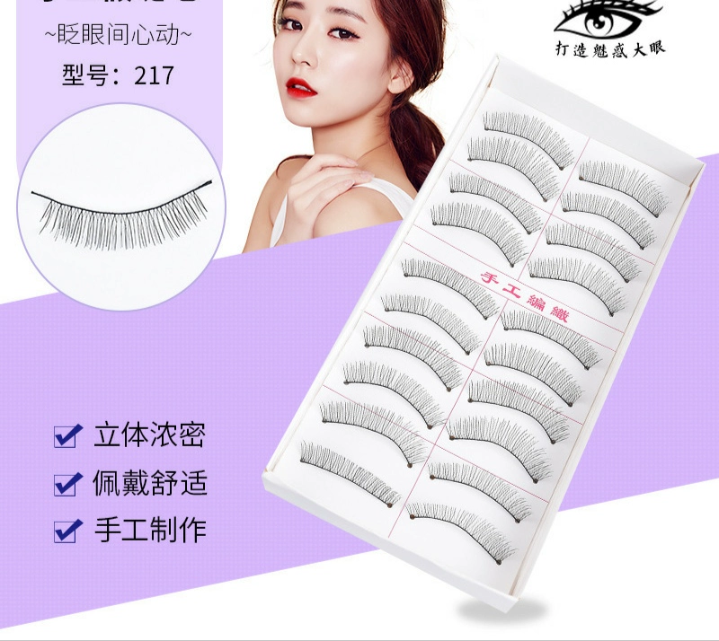 | nameOriginal | 10 pairs of 217 eyelashes, good eyelashes, photo studio bride's natural slender handmade plain cotton thread stem photogenic false eyelashes |