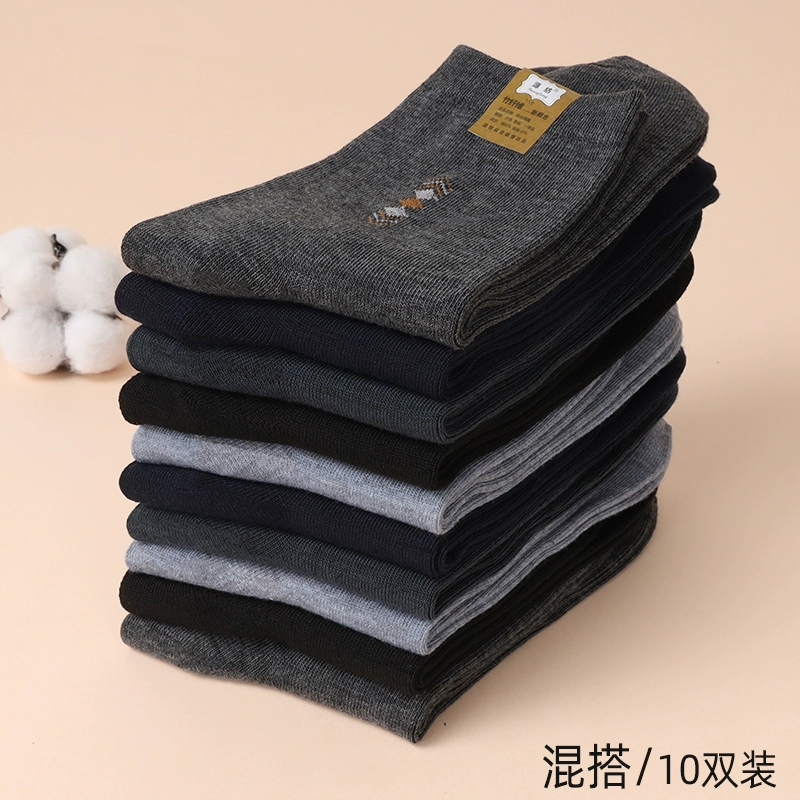 10 pairs of Dad's loose-knot middle-length cotton socks for the elderly
