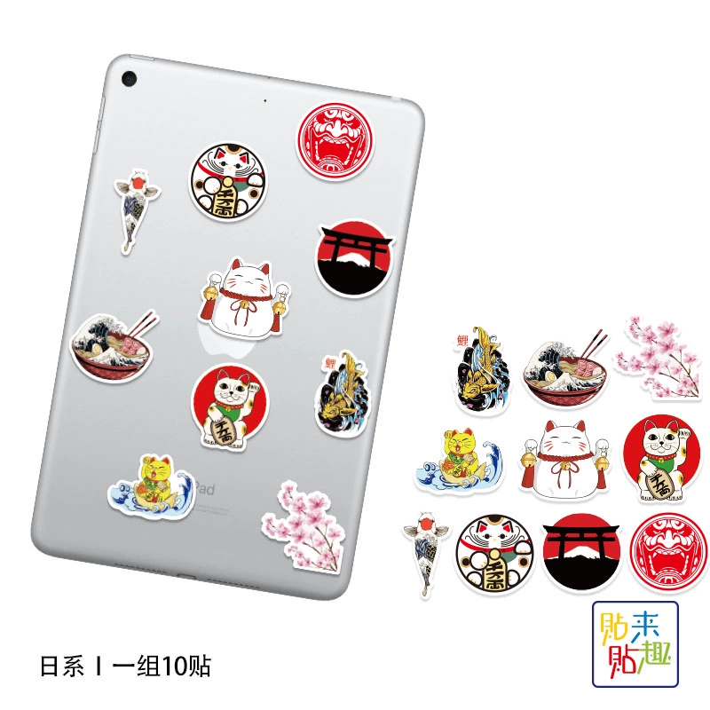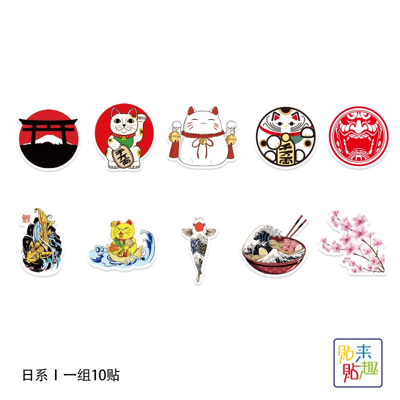 | nameOriginal | 10-piece Japanese-style retro lucky cat stickers, personalized tablets, mobile phones, helmets, motorcycle stickers, waterproof |