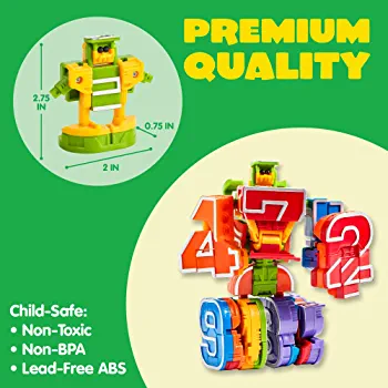 The JOYIN 10 Pcs Number Bots Toys are the perfect educational toy for kids aged 3 to 6 years old. These action figure learning toys come in a set of 10, each with a different number block design. The number robots toys are designed to help kids learn numbers and basic math skills in a fun and engaging way. The bright colors and unique designs of the number bots will capture your child’s attention and keep them entertained for hours. These educational toys make great gifts for kids, both boys and girls, who are just starting to learn about numbers and counting. With the JOYIN 10 Pcs Number Bots Toys, your child will have a blast while learning important skills that will benefit them for years to come.