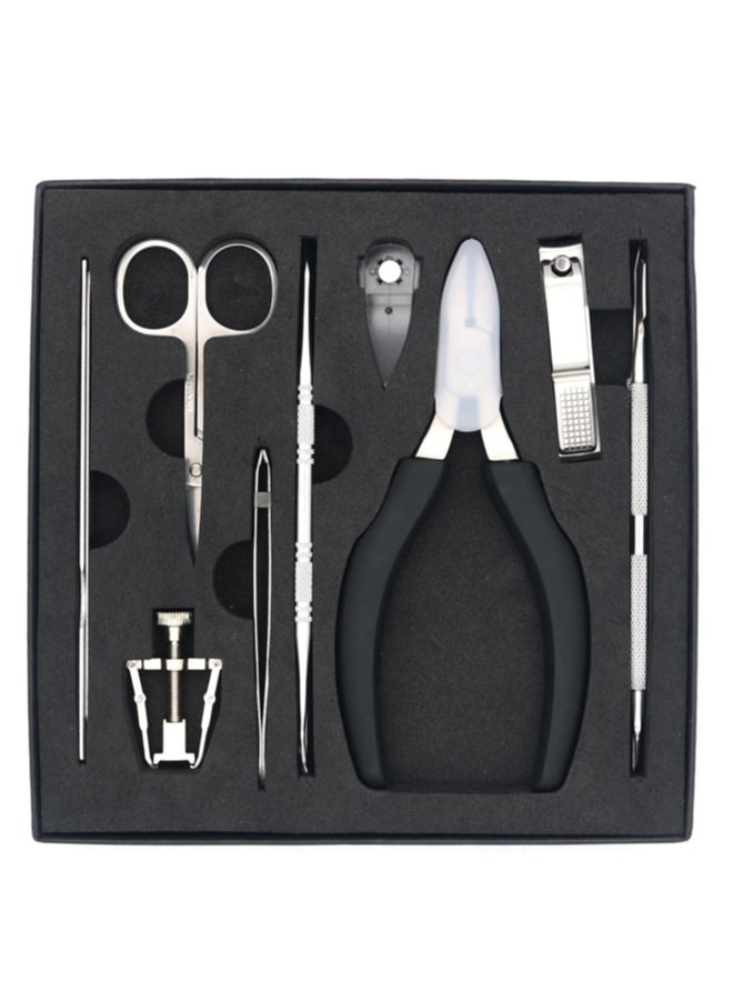 10-piece Pedicure Tool Set for Ingrown Toenail Treatment, made of Stainless Steel. Includes Clippers and Professional Tools for Thick and Ingrown Nails.