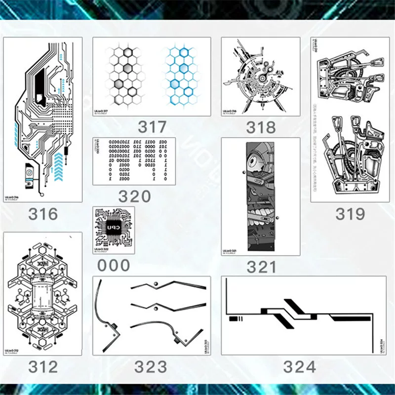 | nameOriginal | 10 pieces of cyberpunk mechanical functional style tattoo stickers, waterproof and long-lasting Halloween facial makeup circuit board stickers |