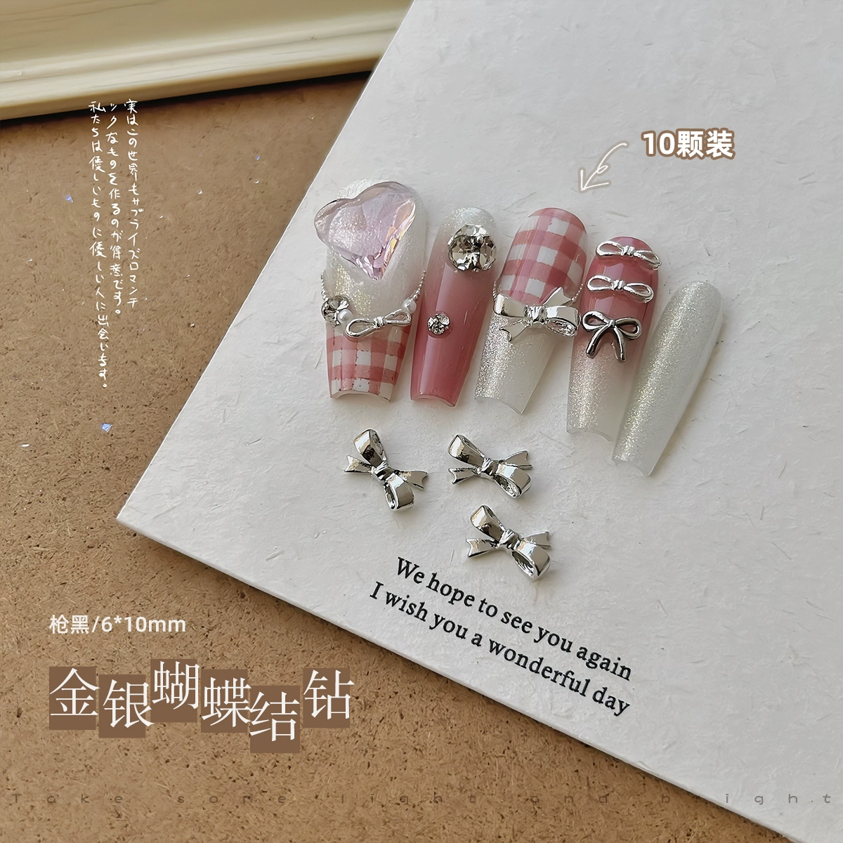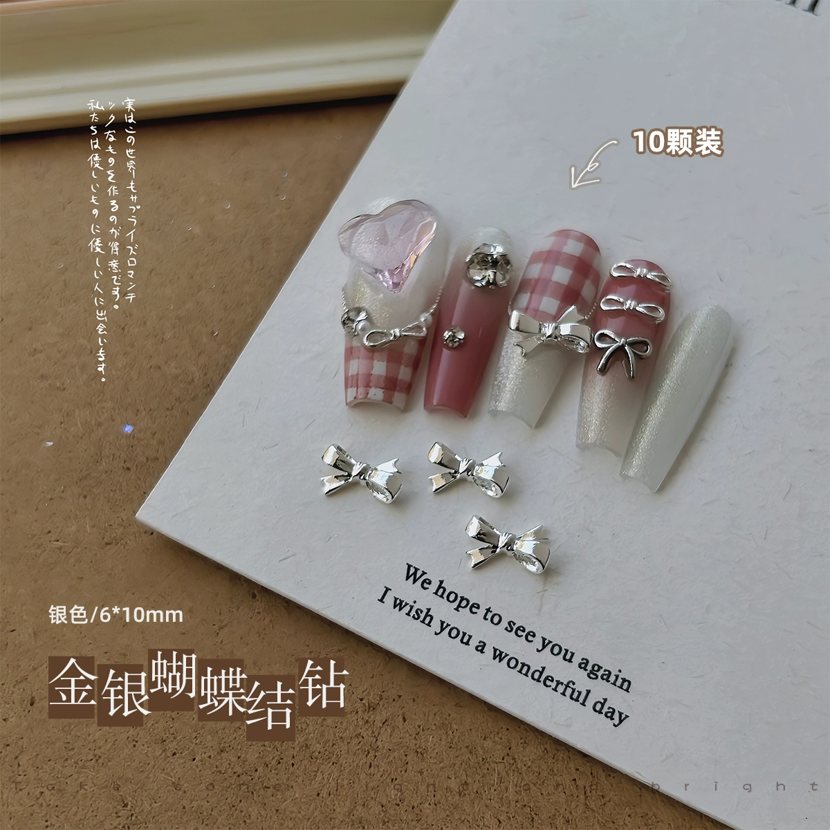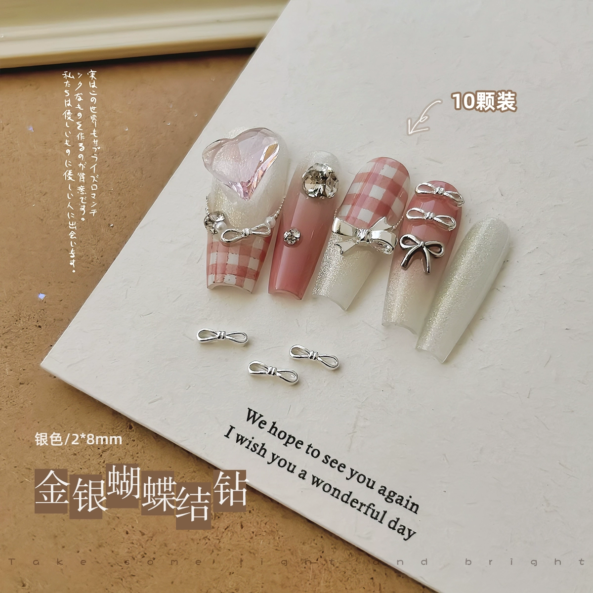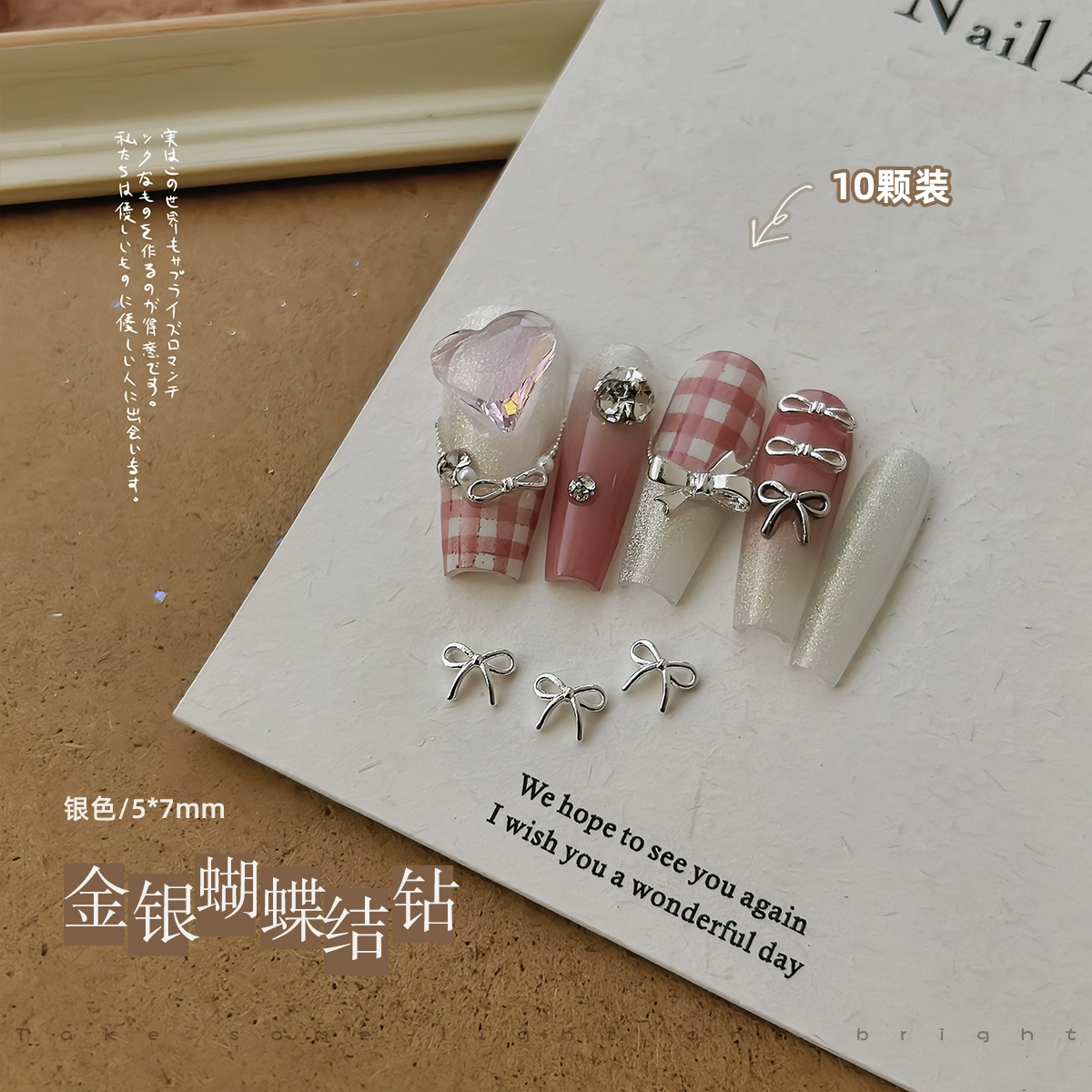 | nameOriginal | 10 pieces of Internet celebrity manicure alloy silver bow three-dimensional nail decorations Japanese streamers small bow tie accessories diamonds |