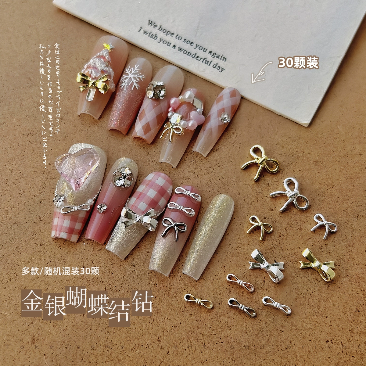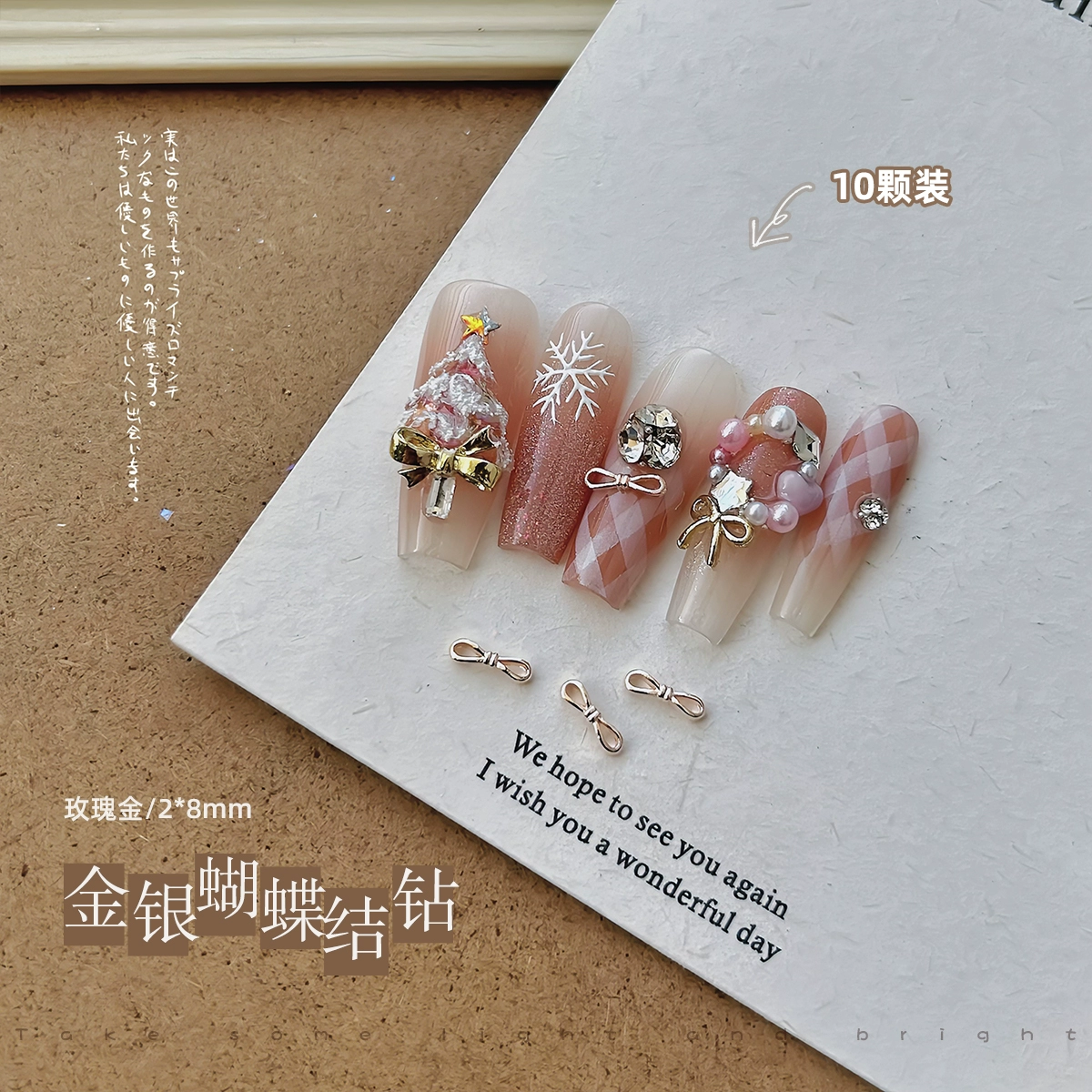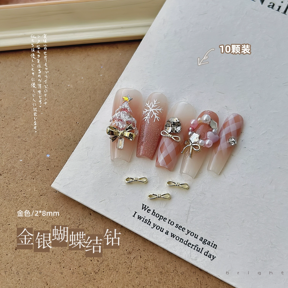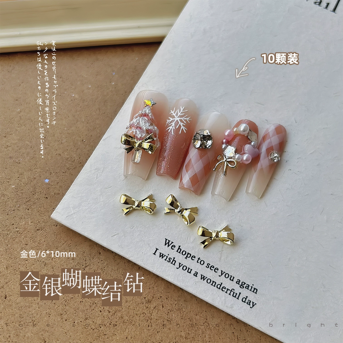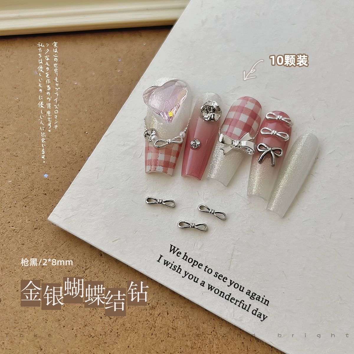 | nameOriginal | 10 pieces of Internet celebrity manicure alloy silver bow three-dimensional nail decorations Japanese streamers small bow tie accessories diamonds |