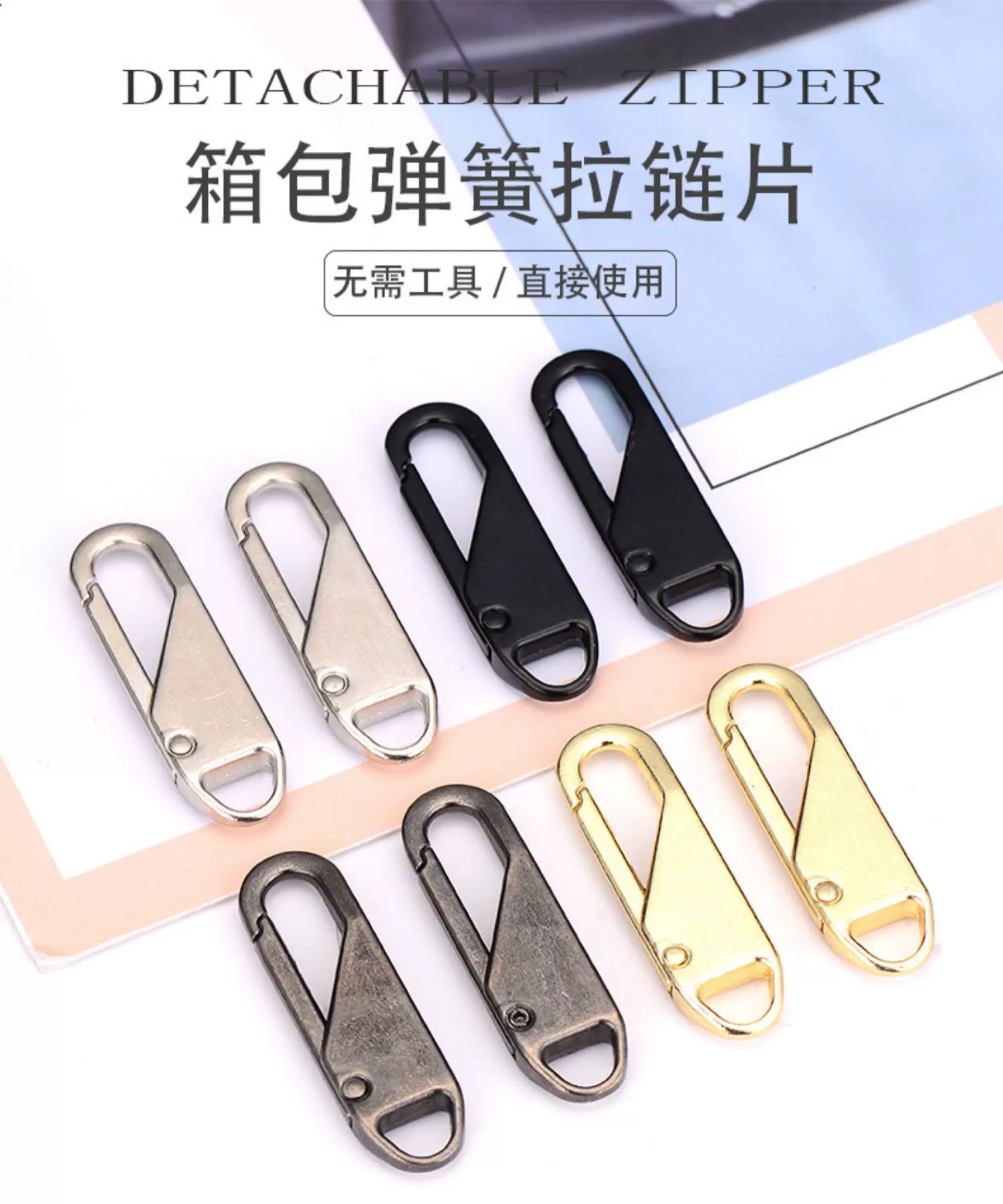 | nameOriginal | 10 pieces of metal zipper pullers are detachable and replaceable. The zipper pullers can be used on school bags, coats, clothes, bags and shoes. |