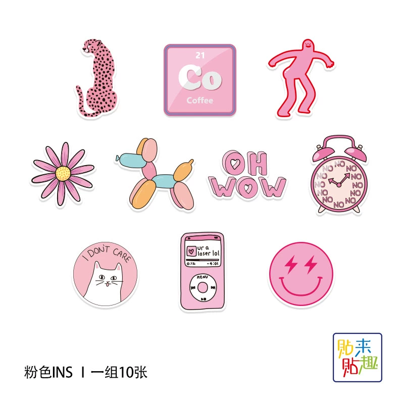 10 pink cute pocket stickers, personalized cartoon laptops, mobile phone power banks, helmet stickers, waterproof