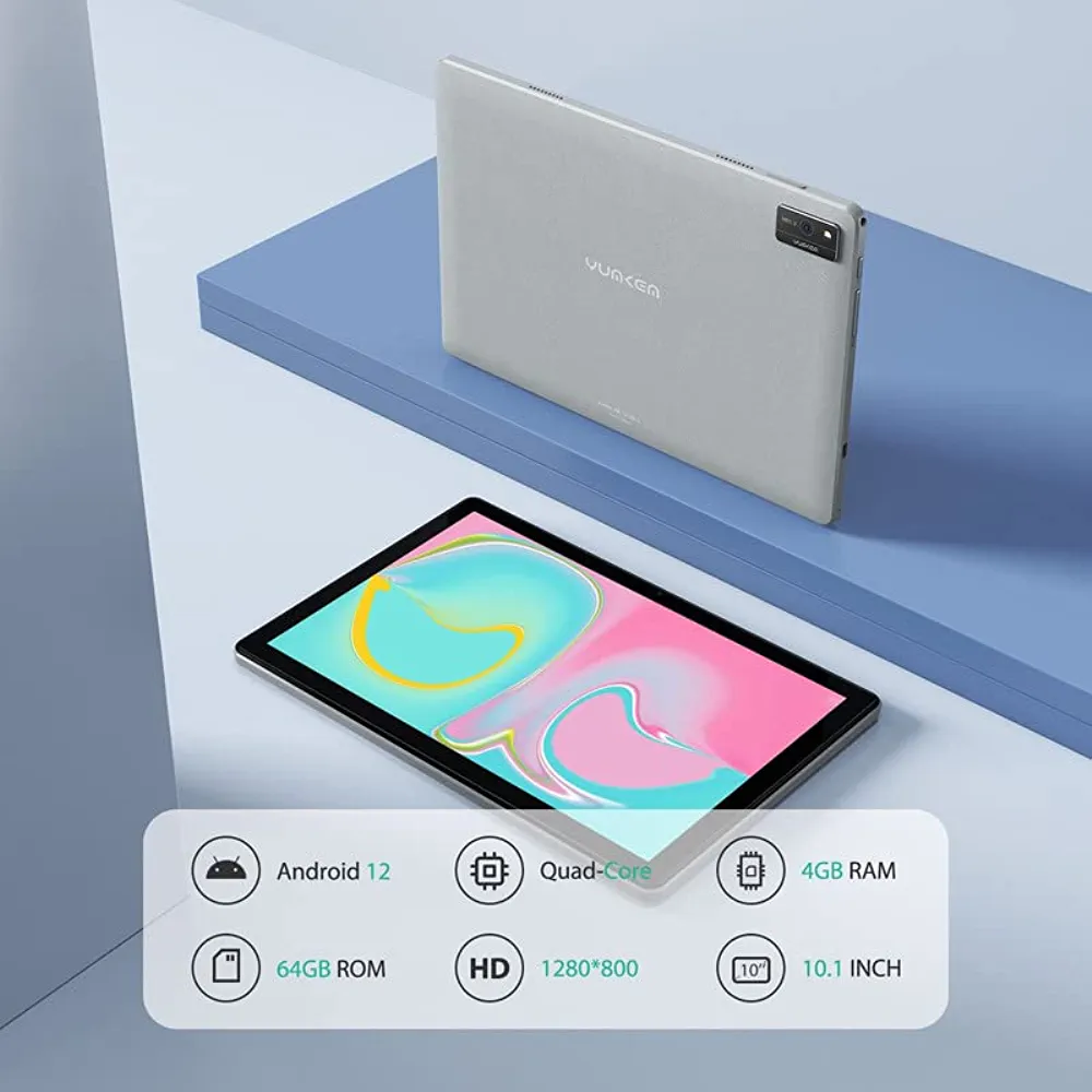 Newest Android 12.0 Tablet for 2023 — This tablet is equipped with the latest Android 12.0 system and has a 2.4GHz WiFi connection for faster and more stable downloads and internet surfing. The 10.1″ HD+ 1280*800 IPS screen display provides a wide viewing angle and perfect vision.