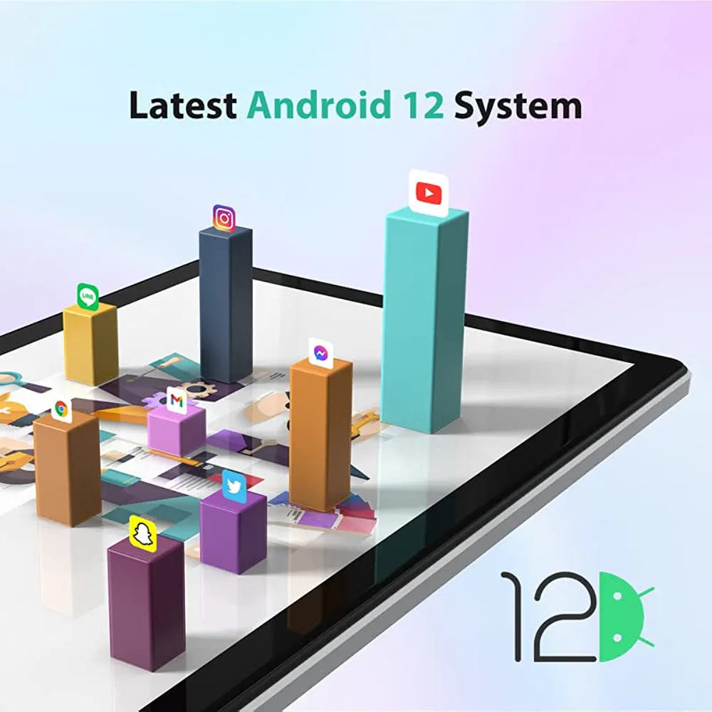 Google GMS Certified Tablet with Quality Service — This Android 12 tablet has passed the GMS certification and supports popular apps such as Facebook, Twitter, YouTube, Tiktok, WhatsApp, G-mail, Skype, Disney+, Netflix, Line, Instagram, and Google Assistant. The tablet comes with a 1-month free replacement and 5-year warranty. If you have any questions, our customer service team is available 24/7.