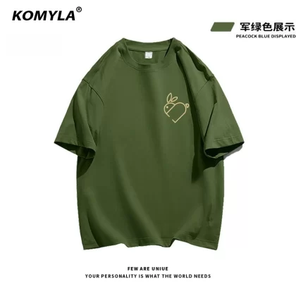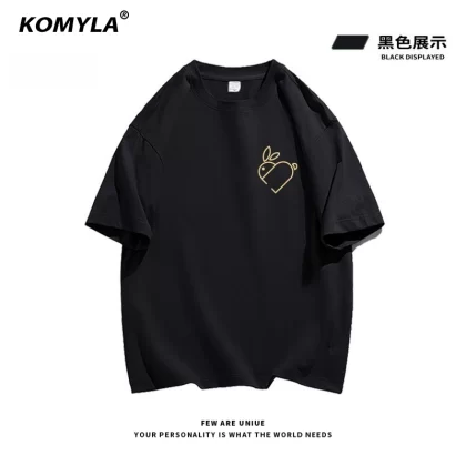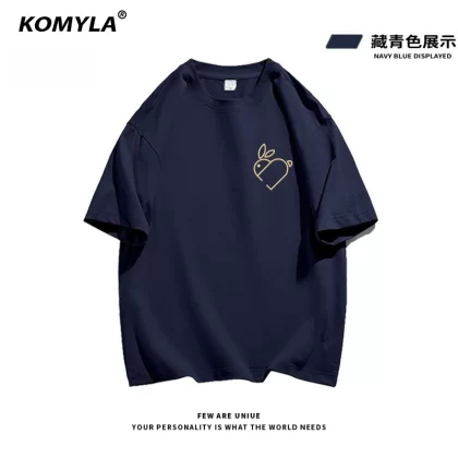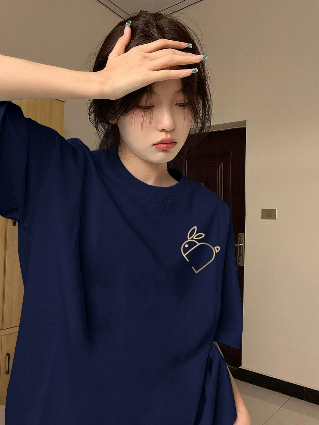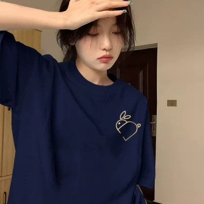 | nameOriginal | 100% cotton 2024 spring and summer new style simple bunny t-shirt women's navy blue loose short-sleeved versatile couple tops |