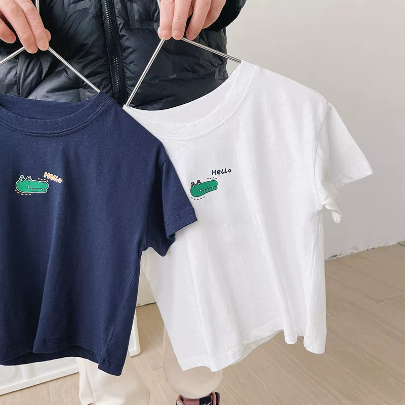 100% cotton boys cartoon short-sleeved T-shirt summer 2024 new Korean version dinosaur print casual baby top