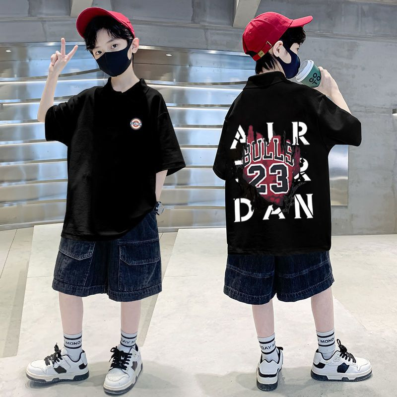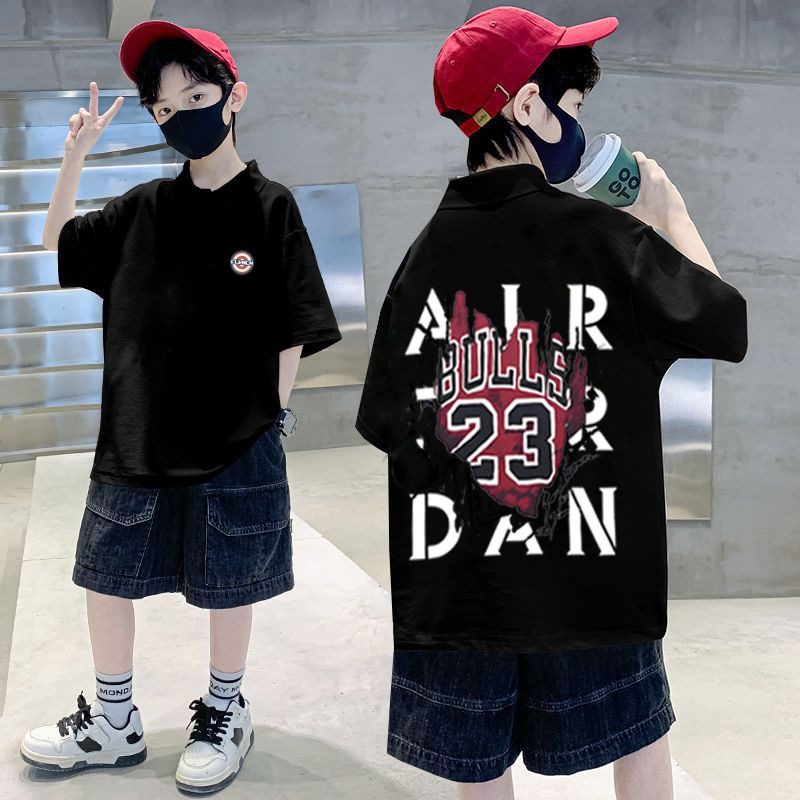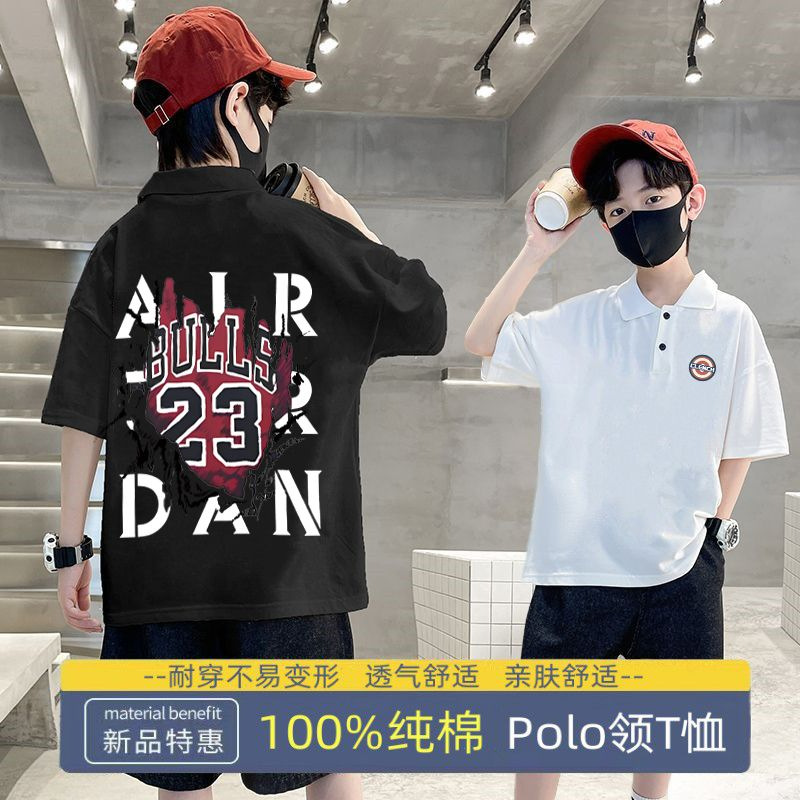 100% Cotton Boys' short-sleeved T-shirt summer children's clothing handsome boys' half-sleeved POLO collar Middle and big children's fashion top