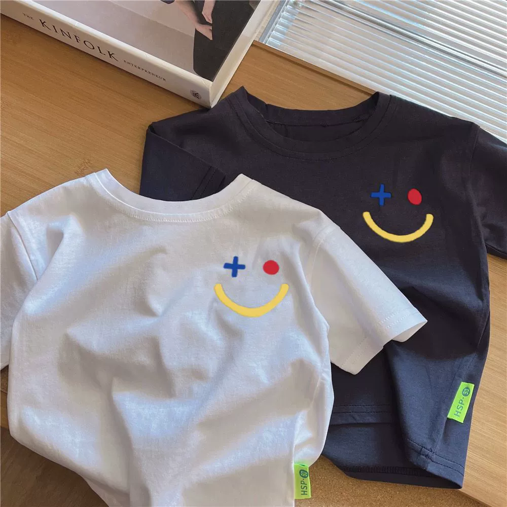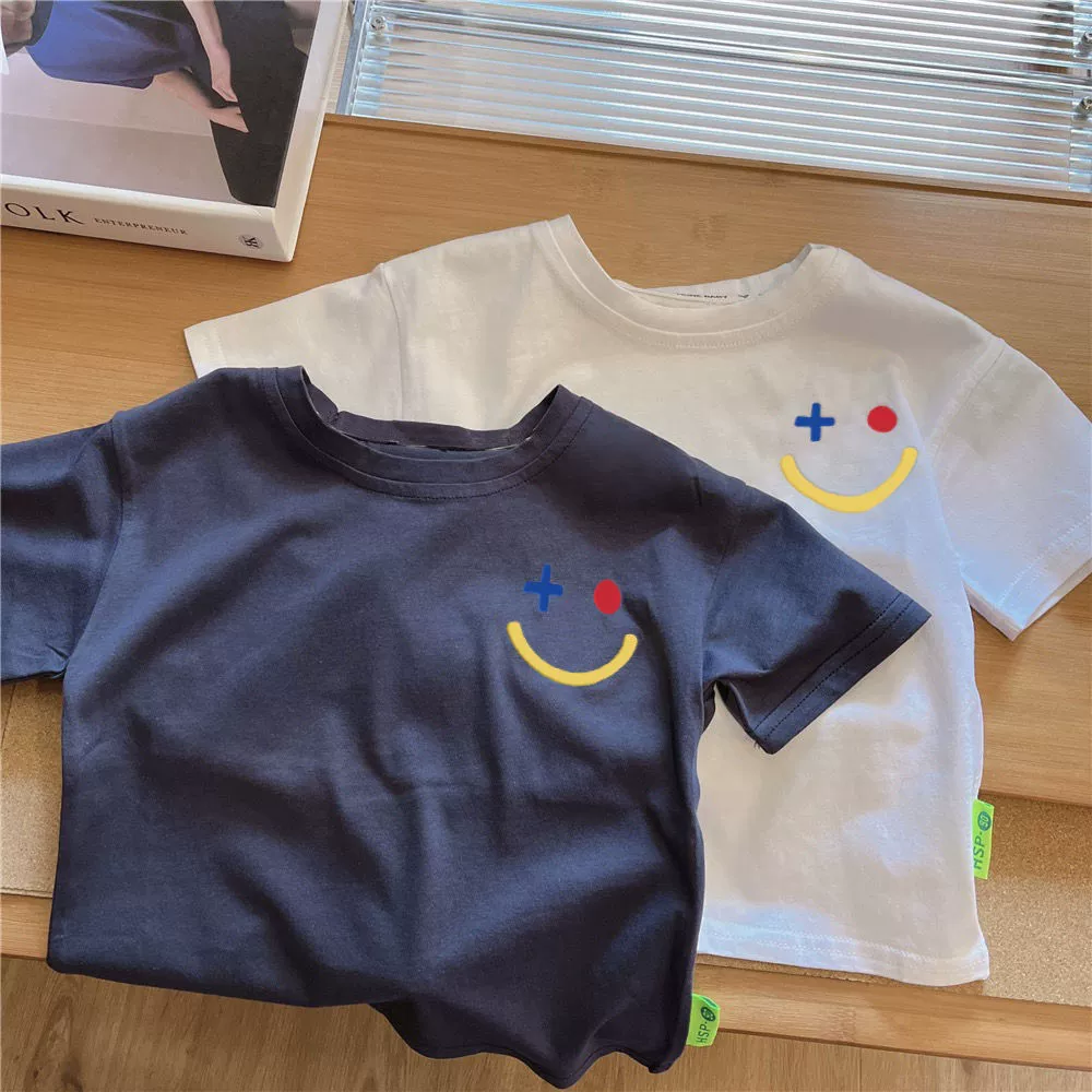 100% cotton boys short-sleeved T-shirt summer smiley print loose Korean style half-sleeved baby tops for boys and girls