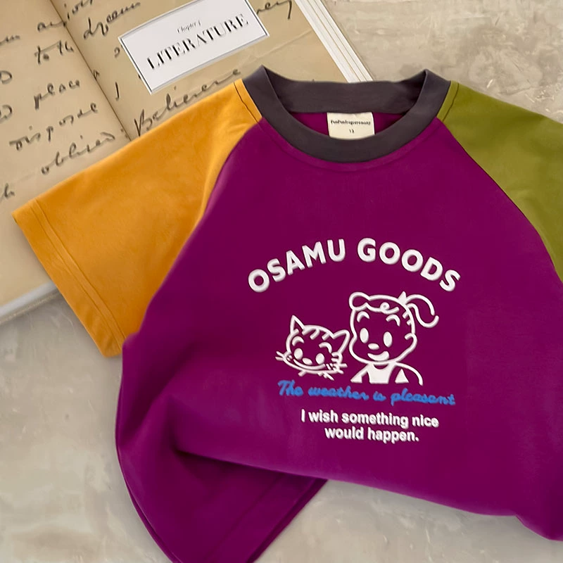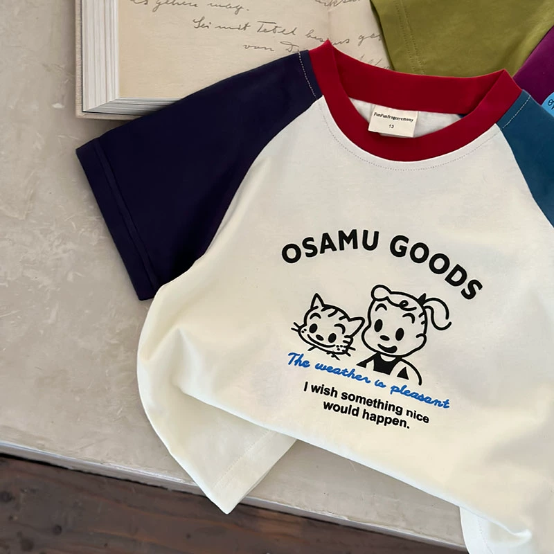 | nameOriginal | 100% cotton children's cartoon t-shirt boys short-sleeved 2024 summer new style raglan color-blocked baby tops for girls |