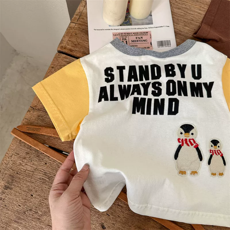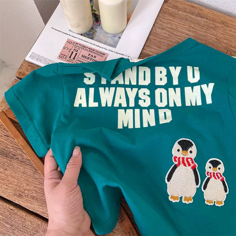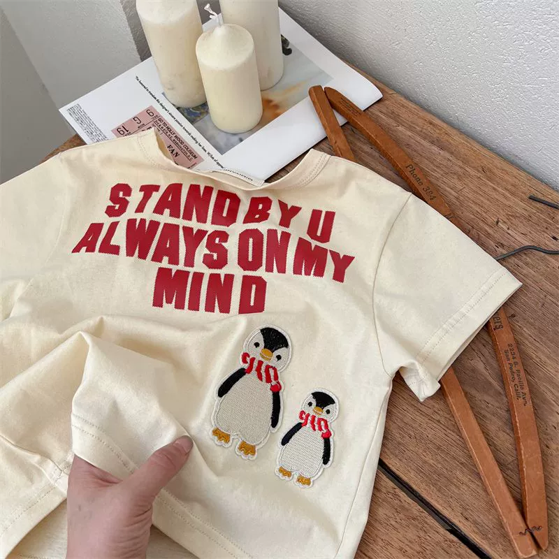 | nameOriginal | 100% cotton children's t-shirt short-sleeved 2024 new cartoon embroidered penguin baby boy summer style top |
