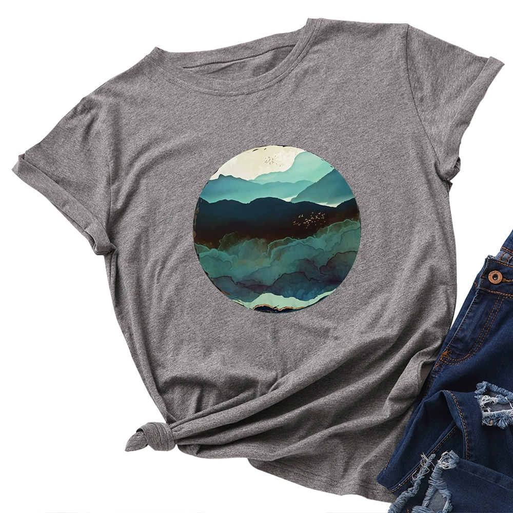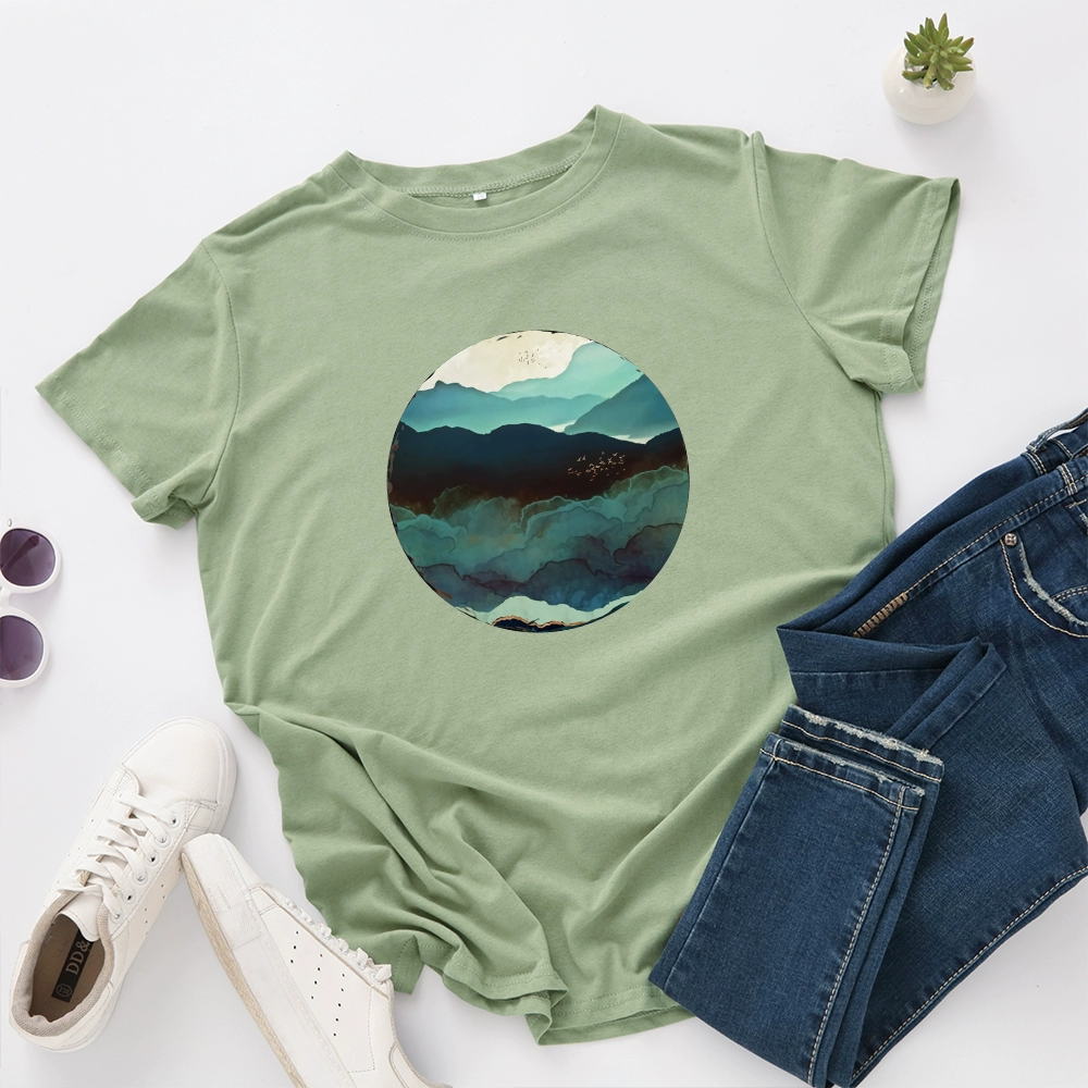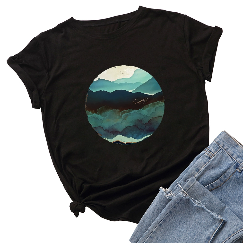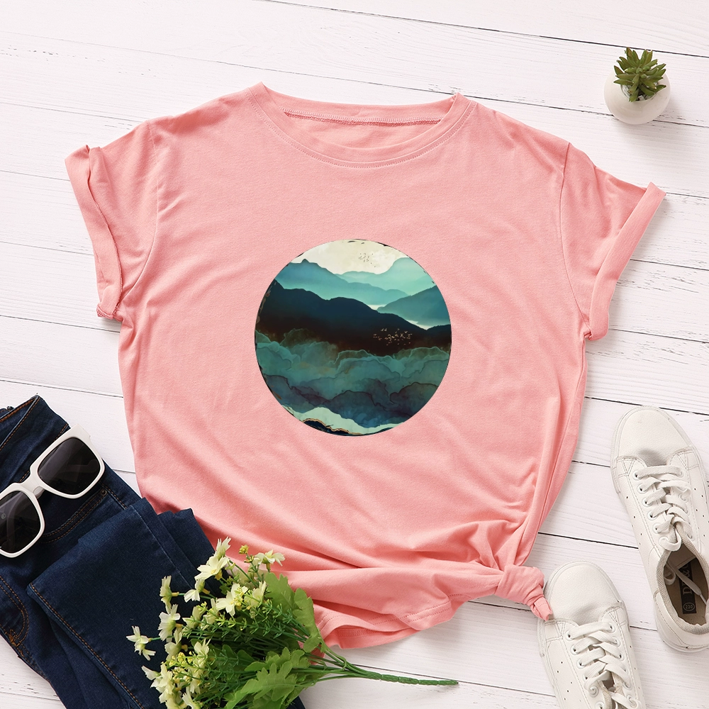 | nameOriginal | 100% cotton cross-border Amazon large size loose European and American clothing landscape painting thin short-sleeved T-shirt women's trend |