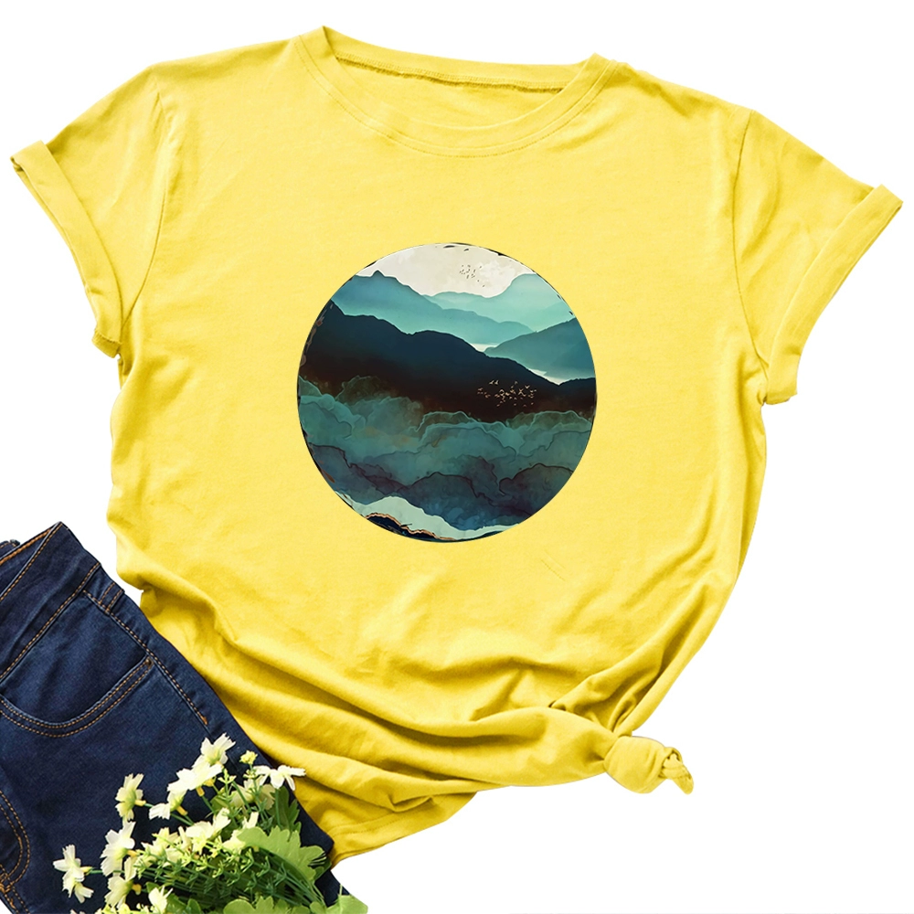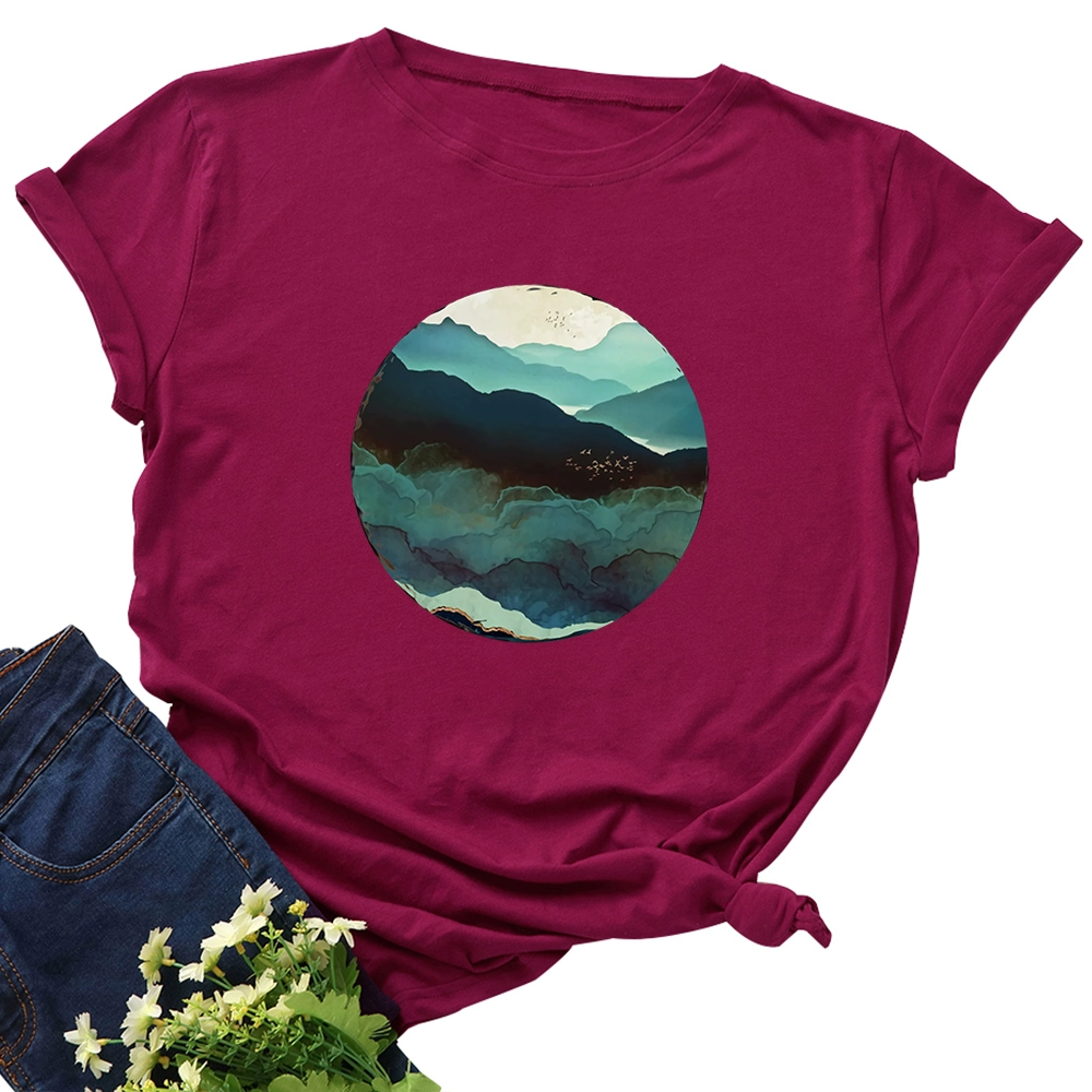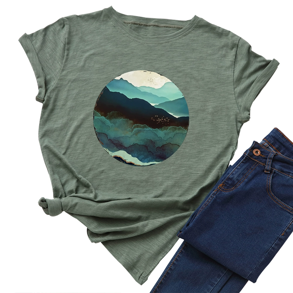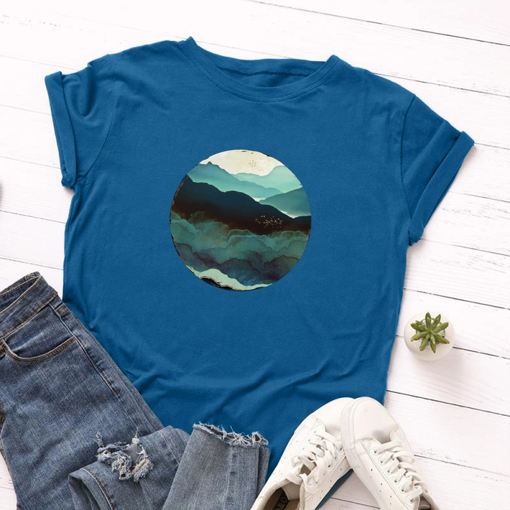 | nameOriginal | 100% cotton cross-border Amazon large size loose European and American clothing landscape painting thin short-sleeved T-shirt women's trend |