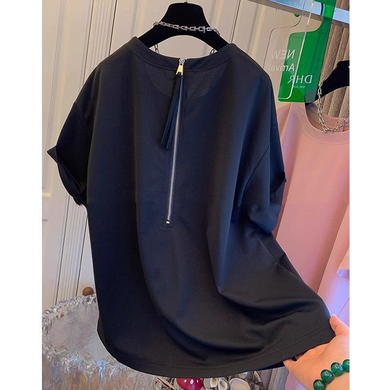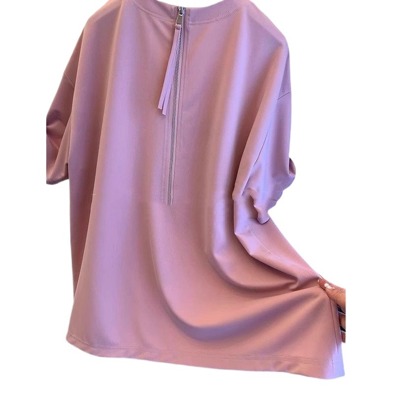 nameOriginal | 100 Cotton Korean Style Solid Color Casual Elegant Lazy Short-sleeved Shirt Women's Summer Loose Zipper Design High-grade Top |
