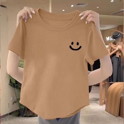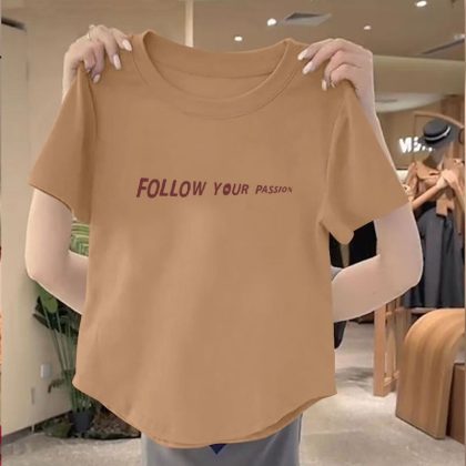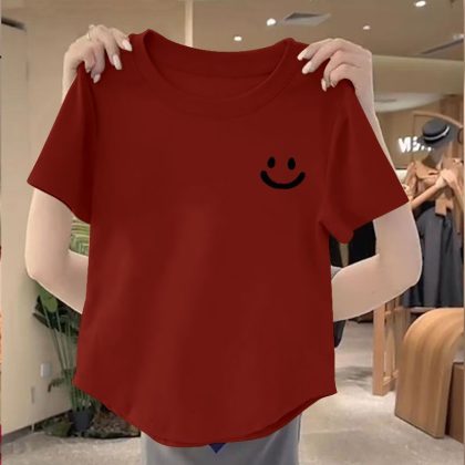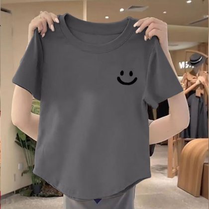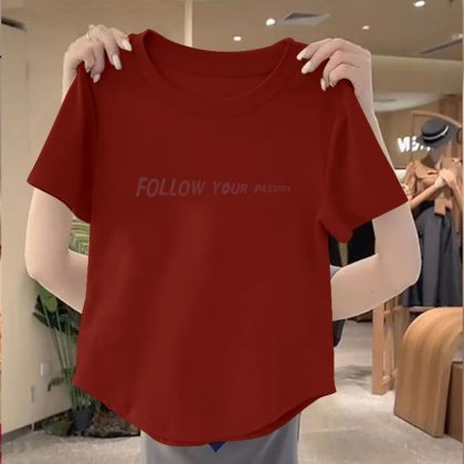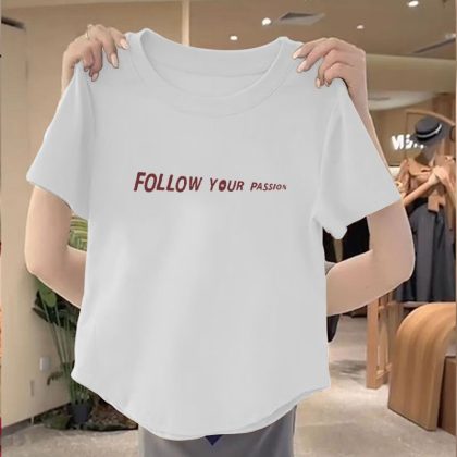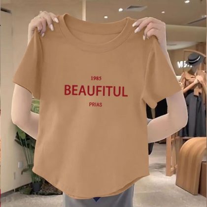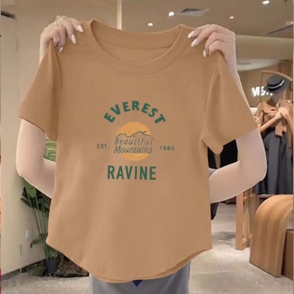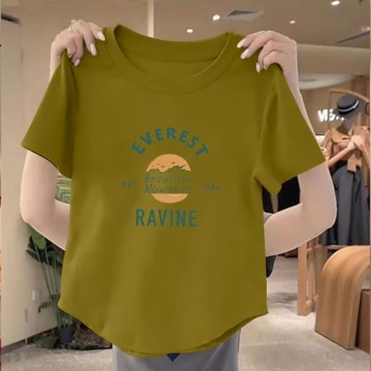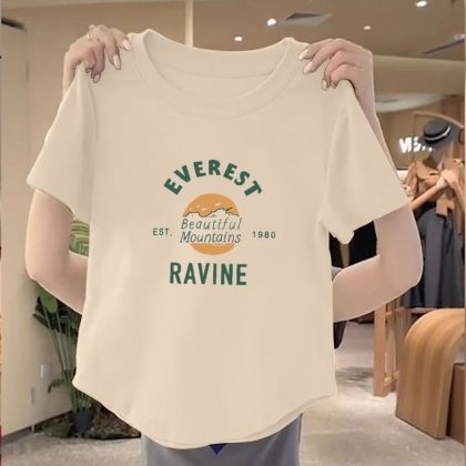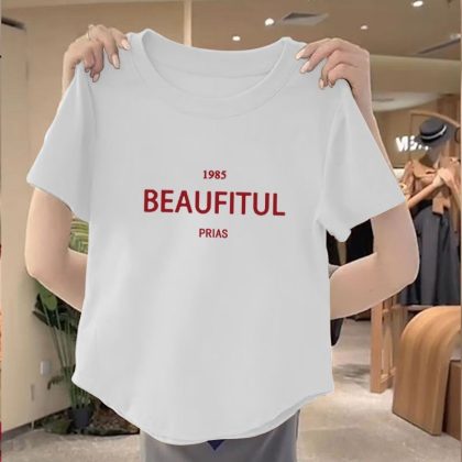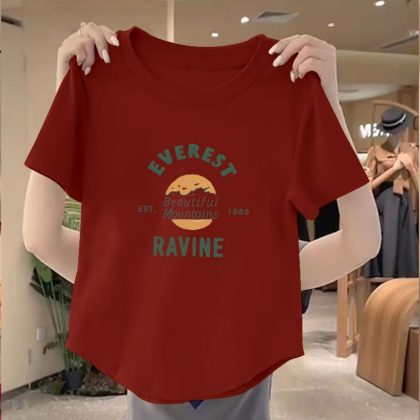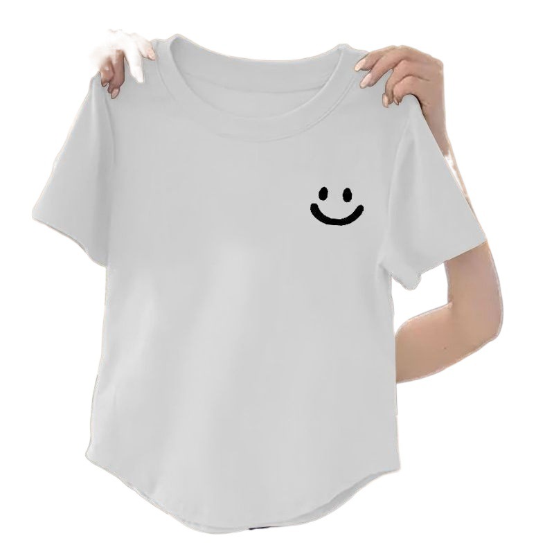 | nameOriginal | 100 Cotton New Arrival Irregular Hem Round Neck Women Top 2024 Summer Slim-fit Korean Printed Short Shirt |