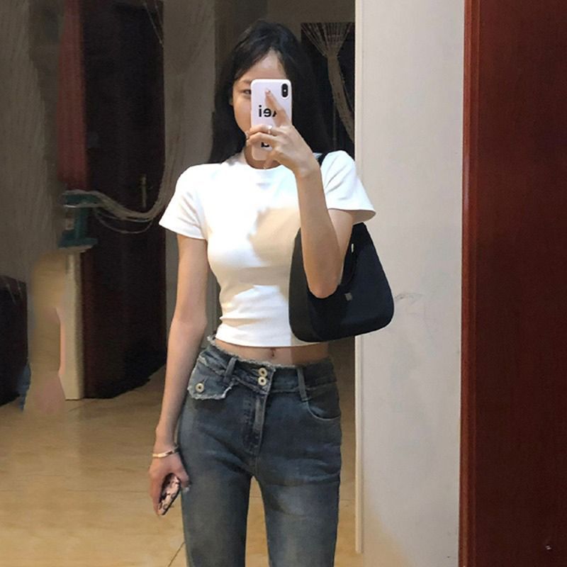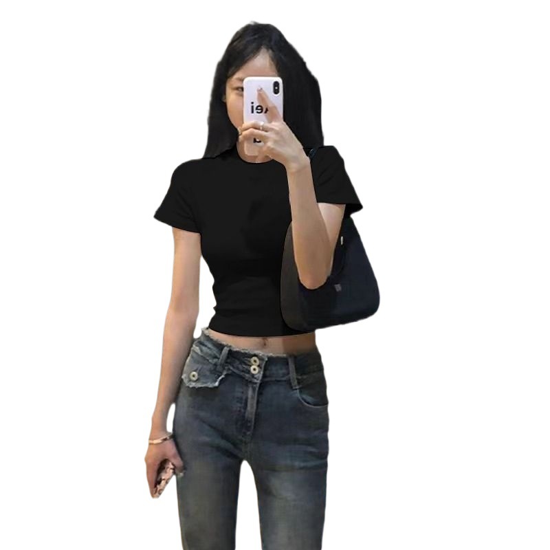 | nameOriginal | 100 Cotton Shoulder Short-sleeved Shirt Women's Summer New Slim-fit Spice Girl High Waist Short Top |