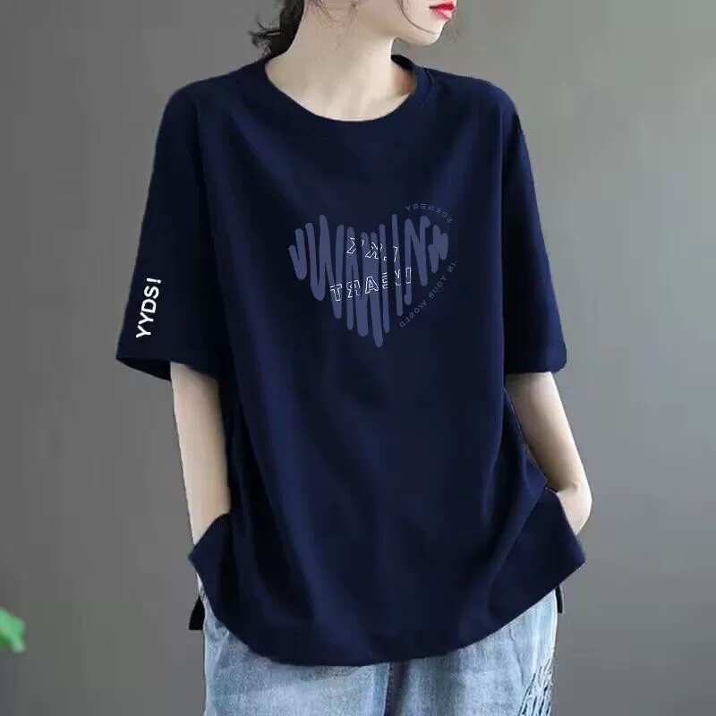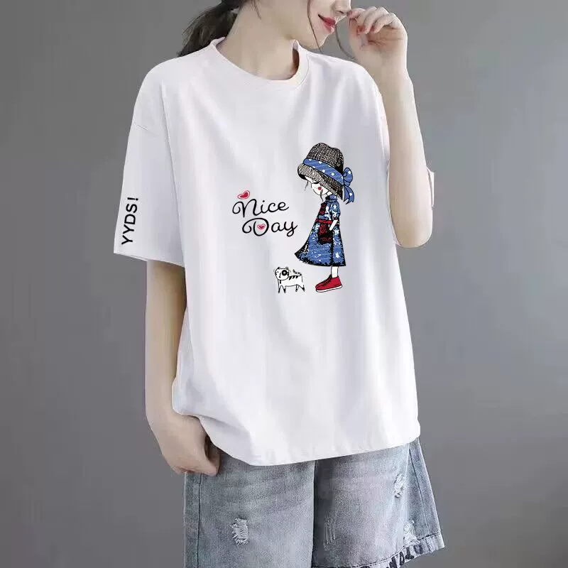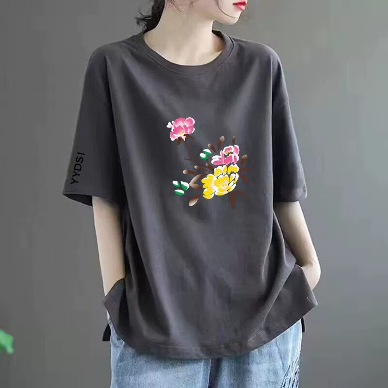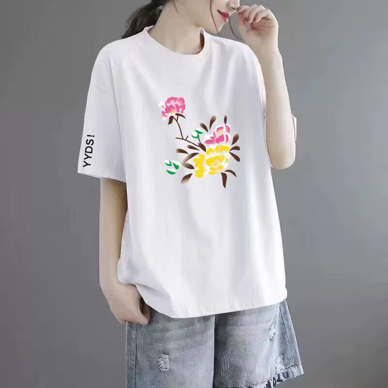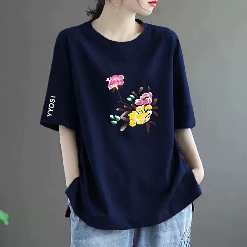 | nameOriginal | 100% cotton T-shirt women's short-sleeved loose versatile printed top round neck middle-aged mother's wear t-shirt top ins trend |