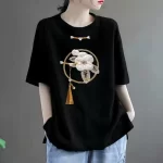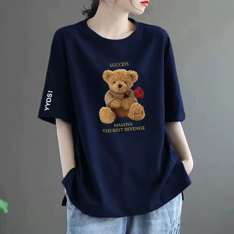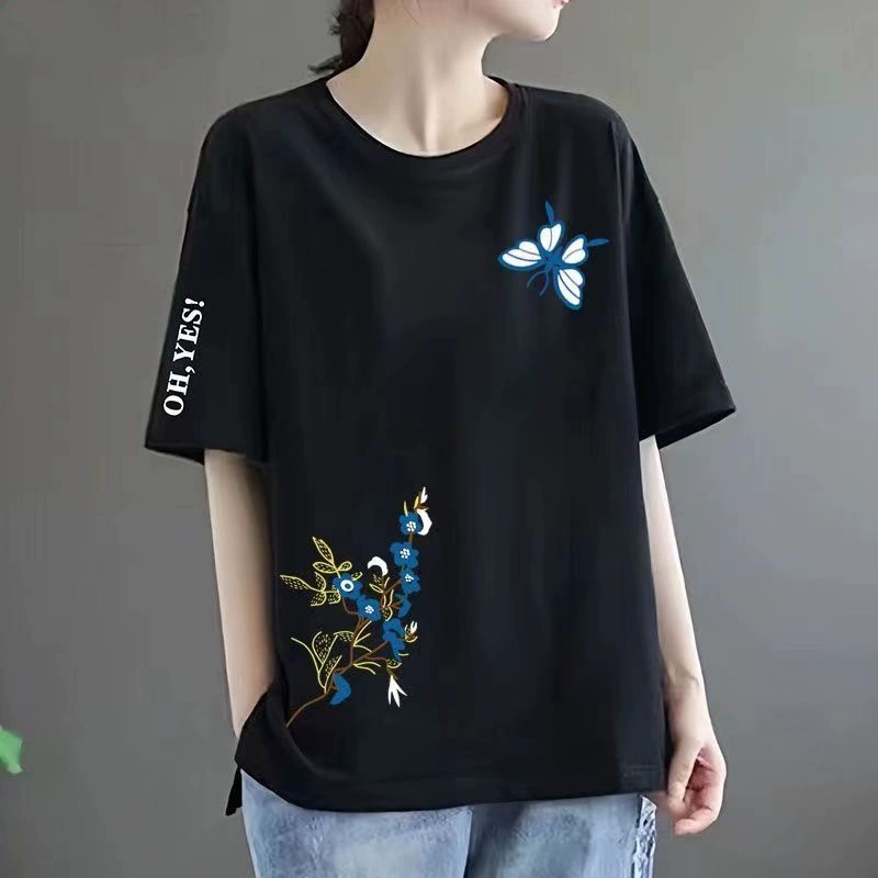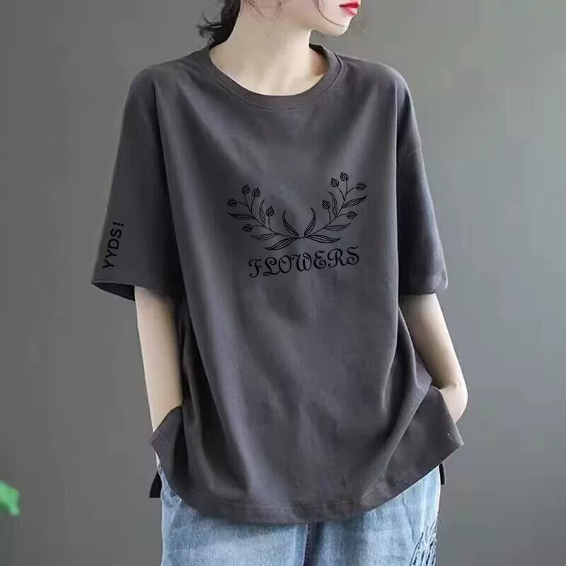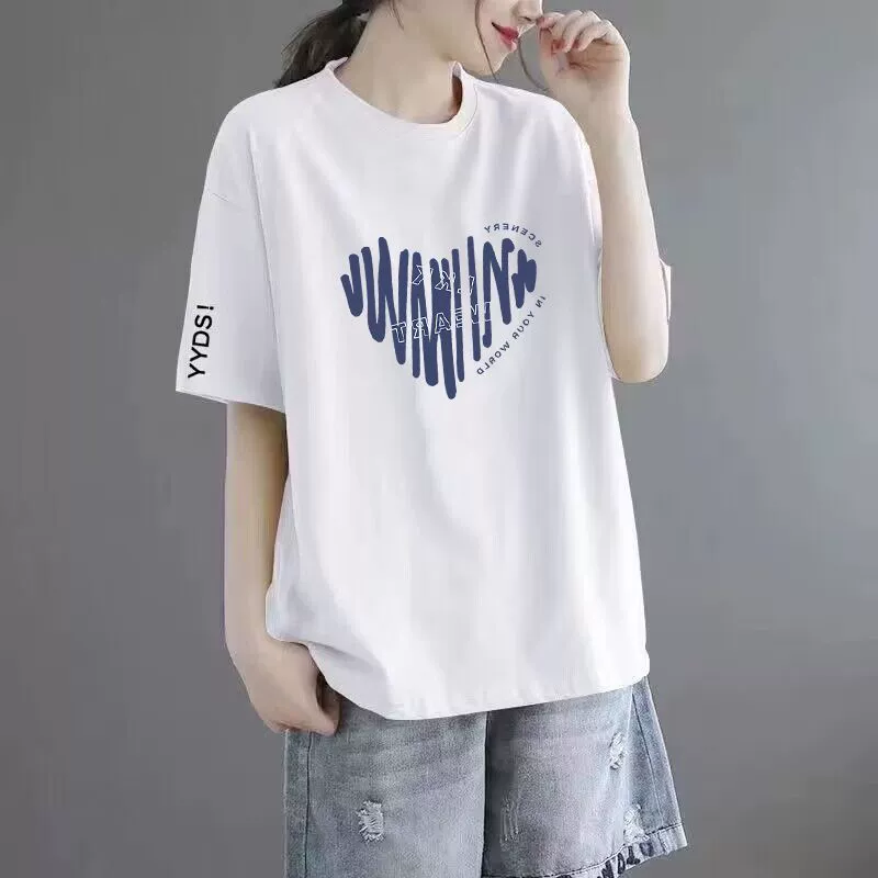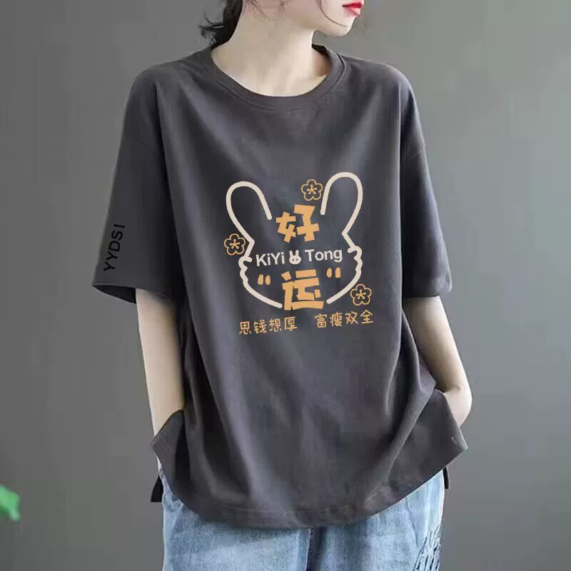 | nameOriginal | 100% cotton T-shirt women's short-sleeved loose versatile printed top round neck middle-aged mother's wear t-shirt top ins trend |