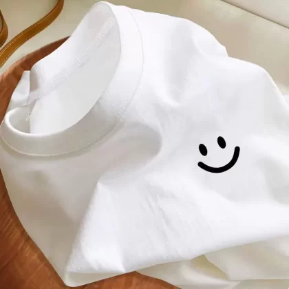 | nameOriginal | 100% cotton white short-sleeved t-shirt summer loose Korean style student retro top for men and women round neck cotton smiley face |